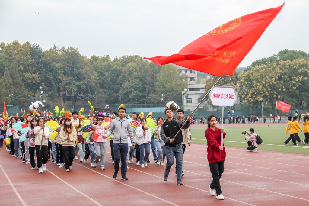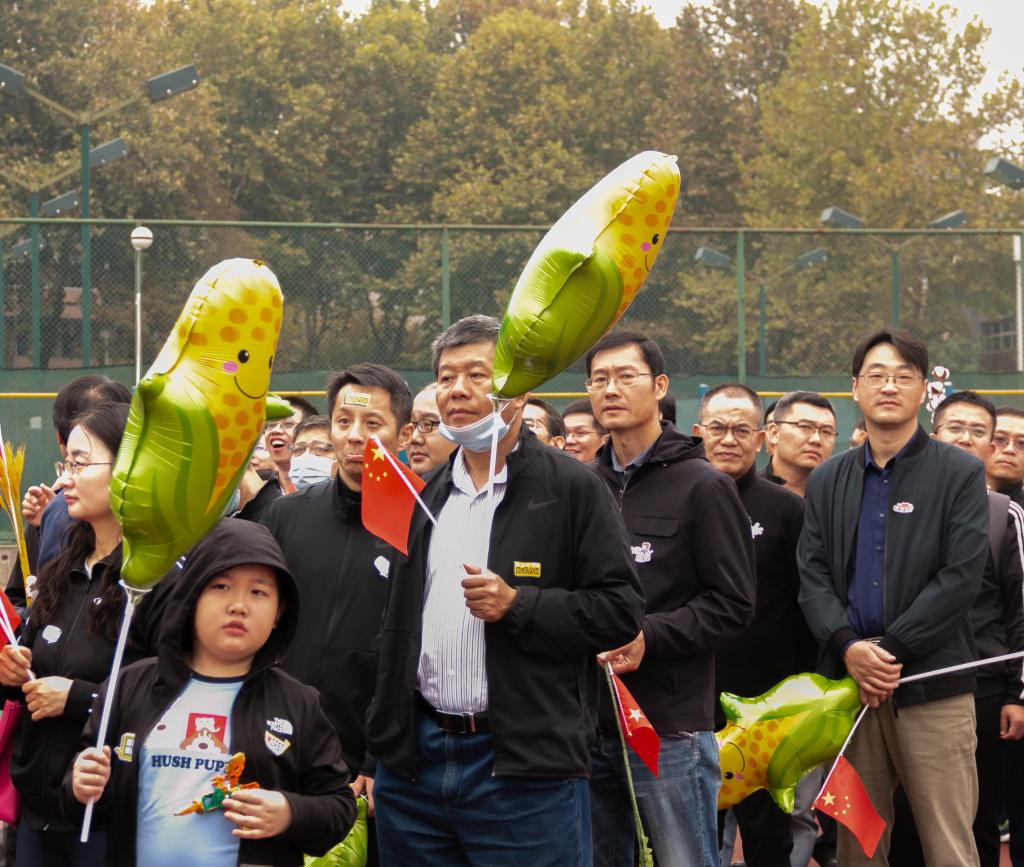 早操方阵汇报结束,入场式开始,由公司老师与员工组成的“植科”方阵开始走入操场。老师与同学们手持棉花、蘑菇、玉米、小麦等模型,在经过主席台时挥舞着手上的国旗,展现出“农业大国”的勃勃生气。老师同学们交流着,微笑着,小朋友们也兴奋地东张西望,植科院的前途一片光明。