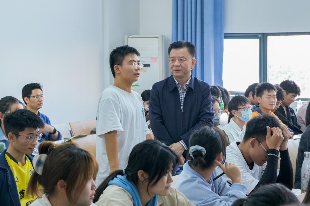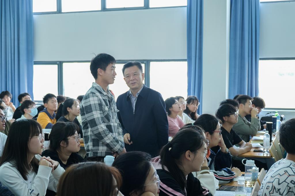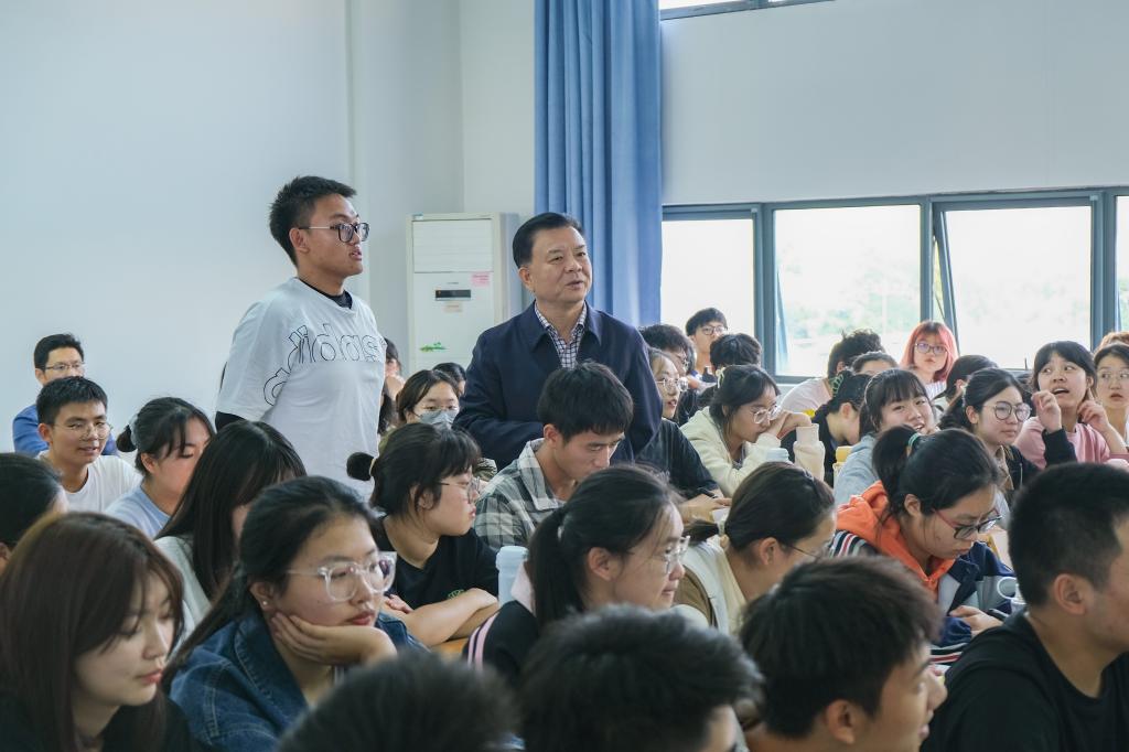 最后,姚江林介绍了张启发院士、傅廷栋院士、邓秀新院士等科学家科研报国故事。他借此向同学们提问“作为新时代的华农学子,应该如何为国家粮食安全做出自己的贡献?”“理论和实践相结合。”来自植生2202班的游宇回答道,“扎实学好专业知识的同时,借助公司‘三田三早’实践平台,将所学知识运用到实践中,真正做到把论文写在大地上。”