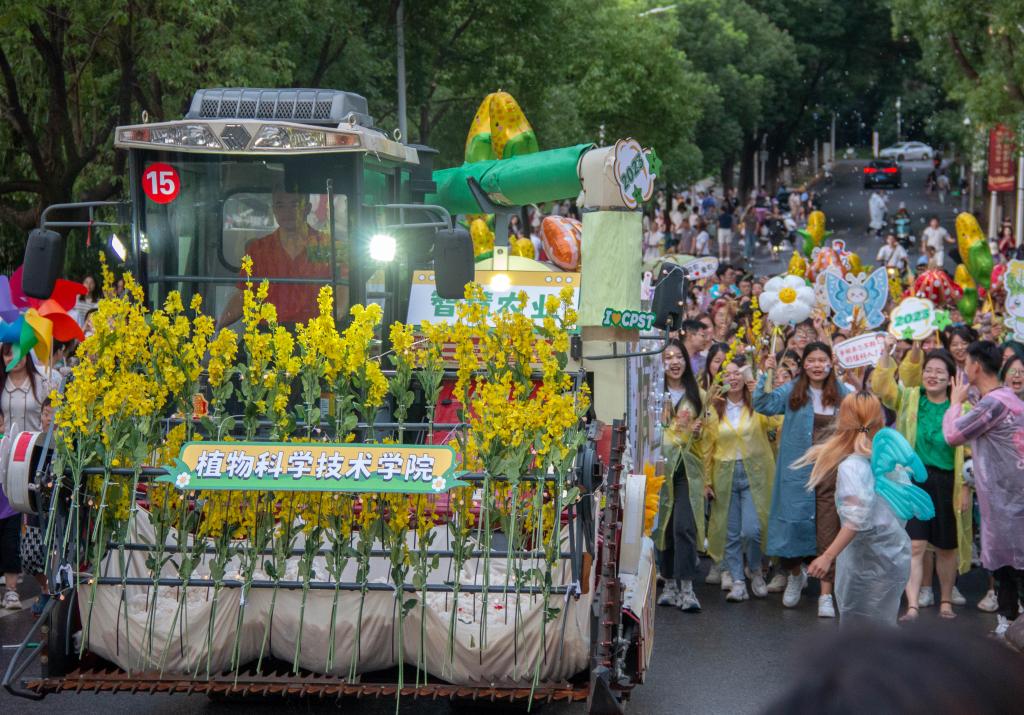 “砥砺深耕,笃行致远”。车尾摆放的油菜、玉米、棉花、蘑菇、水稻等农作物见证着植科学子四年如一日的深耕实践,花车背面的五彩蝴蝶,意指每一位植科学子闪亮动人的四年青春,如蝶羽一般,华丽蜕变,展翅高飞。