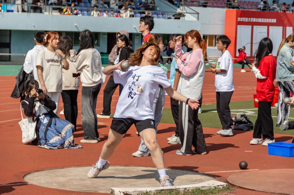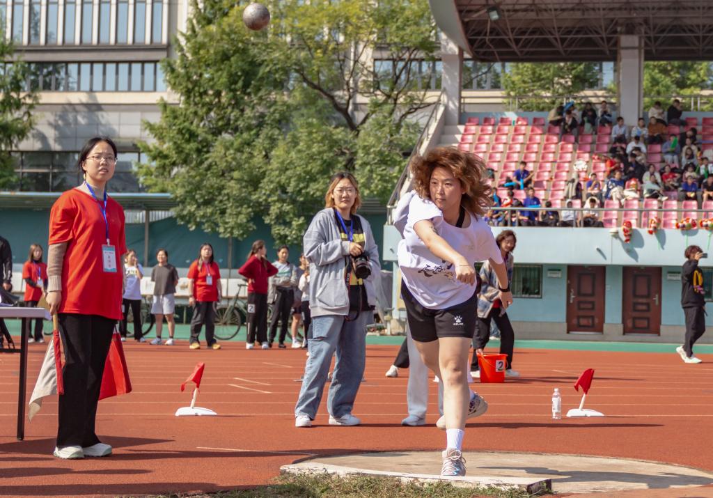 相较于第一次参加运动会时的紧张激动,今年的她更增添了一丝从容与自信。持枪、助跑、投掷,干练顺滑的动作一气呵成,伴随着一道优美的弧线,韦玮的成绩定格在了20.98m,成功突破自己去年19.43m的成绩蝉联女子标枪冠军。“今年目标就是稳住第一名的位置,并且突破自己”,她毫无疑问实现了自己赛前的目标。