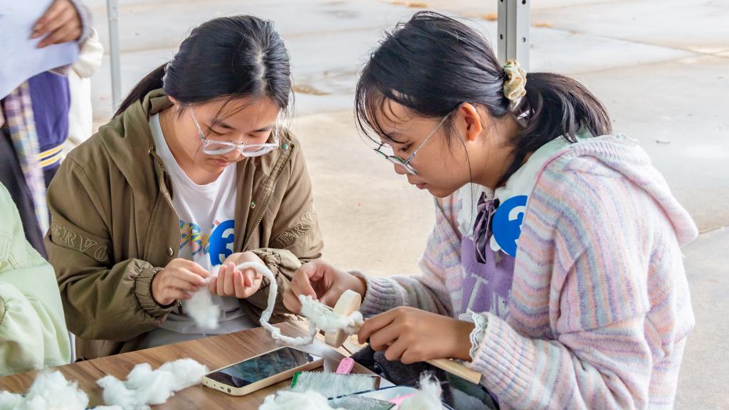 “棉梦大闯关”比赛希望让同学们在进行棉絮处理的过程中认识棉桃的基本结构与体验传统纺线技艺,选手们全神贯注,团结协作,依次完成“棉花脱籽”“纺制棉线”“知识答卷”三轮比赛,同学们纷纷表示在学习之余获得了放松,体验了脱籽与纺线的乐趣并对农业有了更深刻的认识。