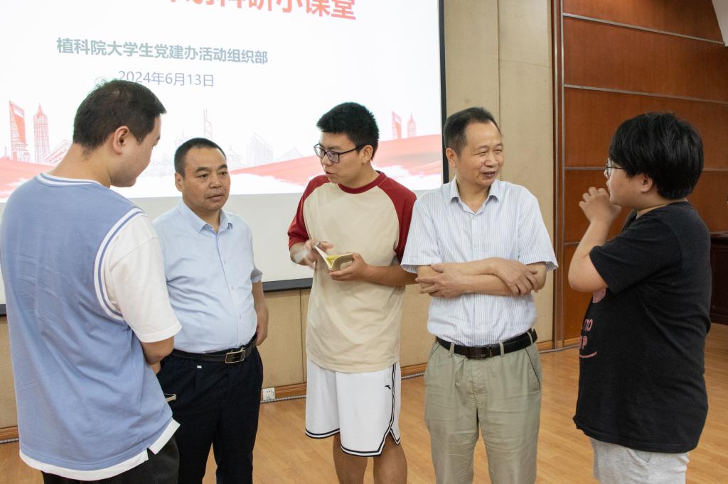 黄俊斌就“红色三助是什么“的问题与同学们交流。他谈到,“红色三助”活动是公司植保教工党支部的特色活动,注重助学、助研、助发展,通过党员教授与员工结对帮扶,帮助员工提前参与到科学研究中来。“同学们要提前做好人生规划,与红色三助优秀的学长学姐积极交流,不断进步、追求卓越”,他鼓励与会同学要积极地参与“红色三助”活动,在师生交流、朋辈交流中找到科研兴趣、人生志趣。