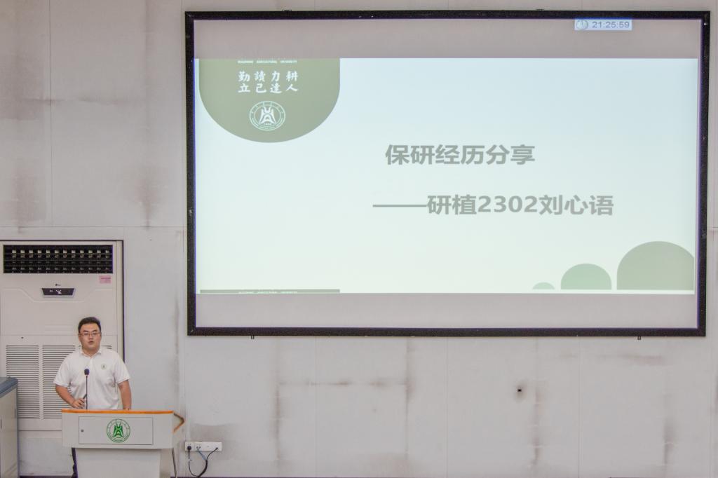 6月20日晚,公司2021级本科生推免与考研动员大会在三教S2报告厅举行。副经理郭亮、朱芬教授、辅导员李纵擎出席会议,研植2023班刘心语、植保2001班闫雨萌进行保研经验分享。