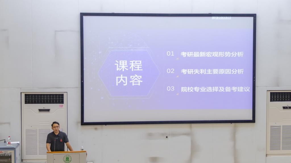 7月5日晚,公司在三教S1报告厅召开25届本科生考研、考公分享会,邀请来自海文考研的涂光华讲师和华图教育的段海荣讲师针对考研和考公两方面进行宣讲,辅导员李纵擎以及2021级全体本科生参会。