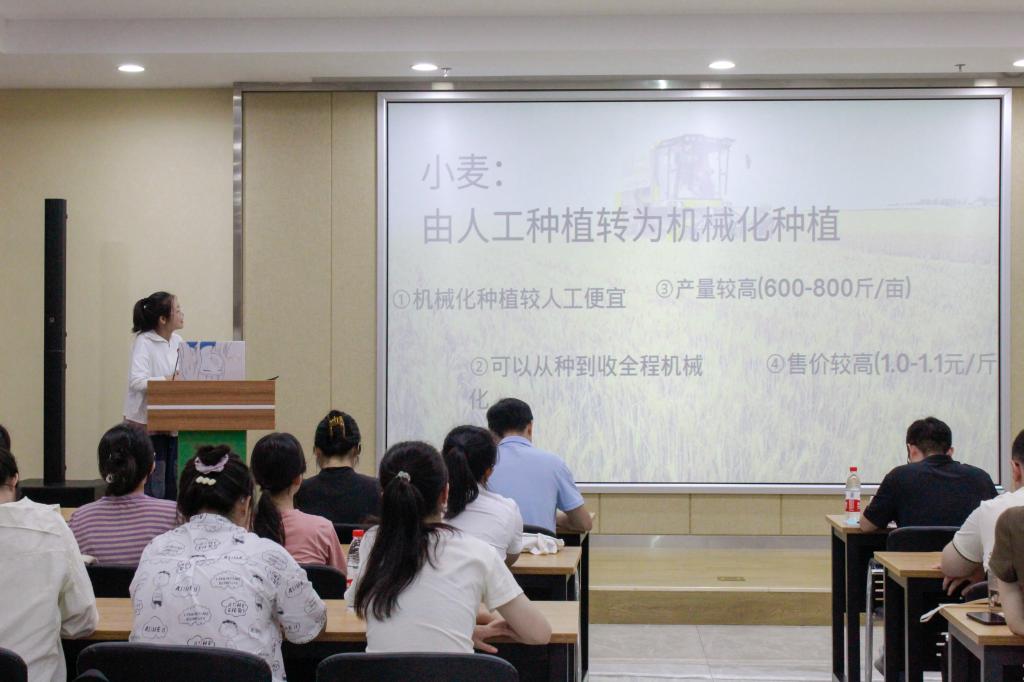 在课题报告环节中,每位新生都精心准备了演讲内容,详细介绍了自己家乡特色作物的种植现状,剖析了小麦、玉米和马铃薯等15种主要农作物近年来种植模式发生转变的具体原因,汇报各具特色。
