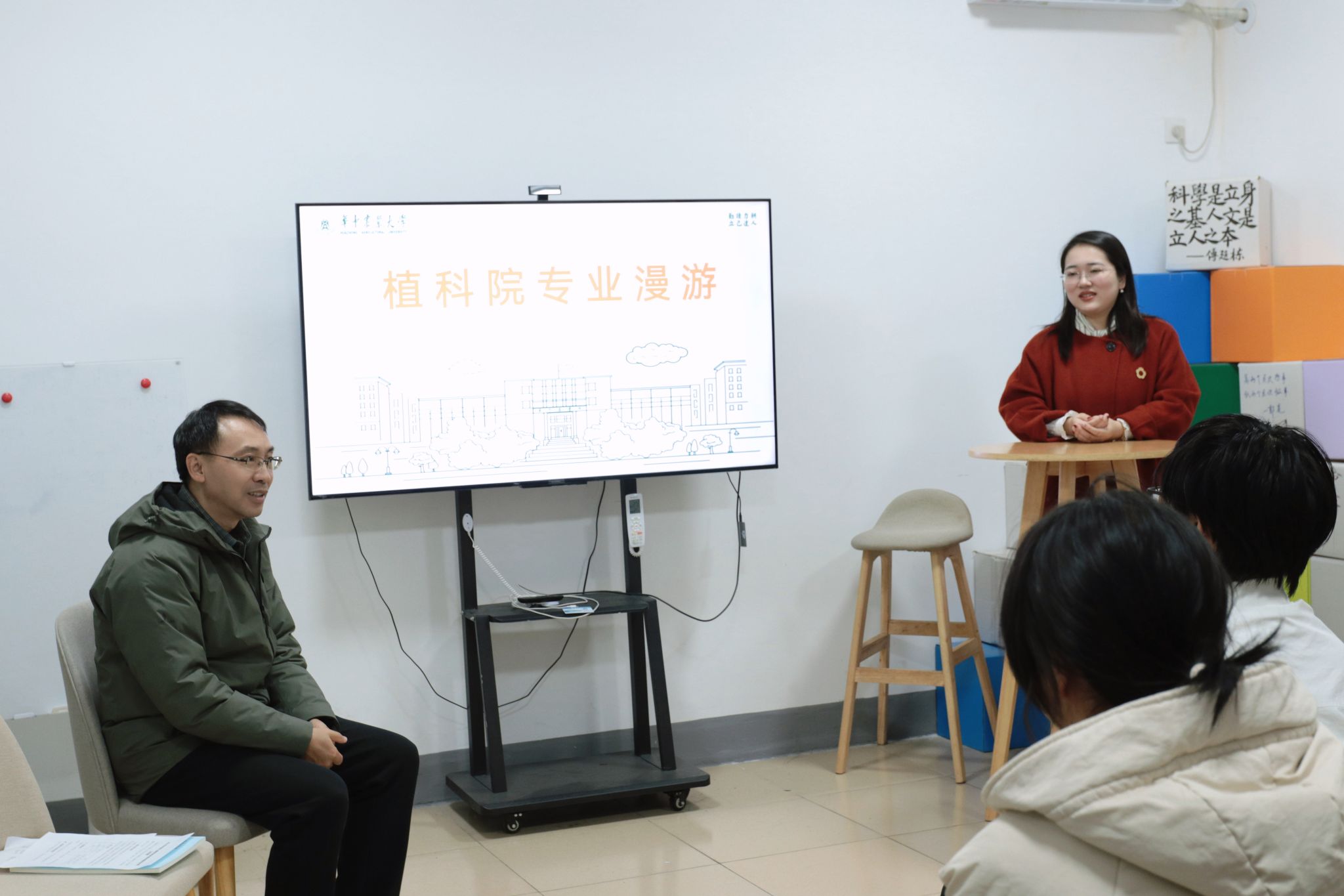 11月27日晚上,公司在智慧农业书院二楼会议室开展专业漫游活动。副经理罗朝喜与有意向转专业到植科院的20余名同学进行深入交流,引导员工明确学术志向,激发专业热情。