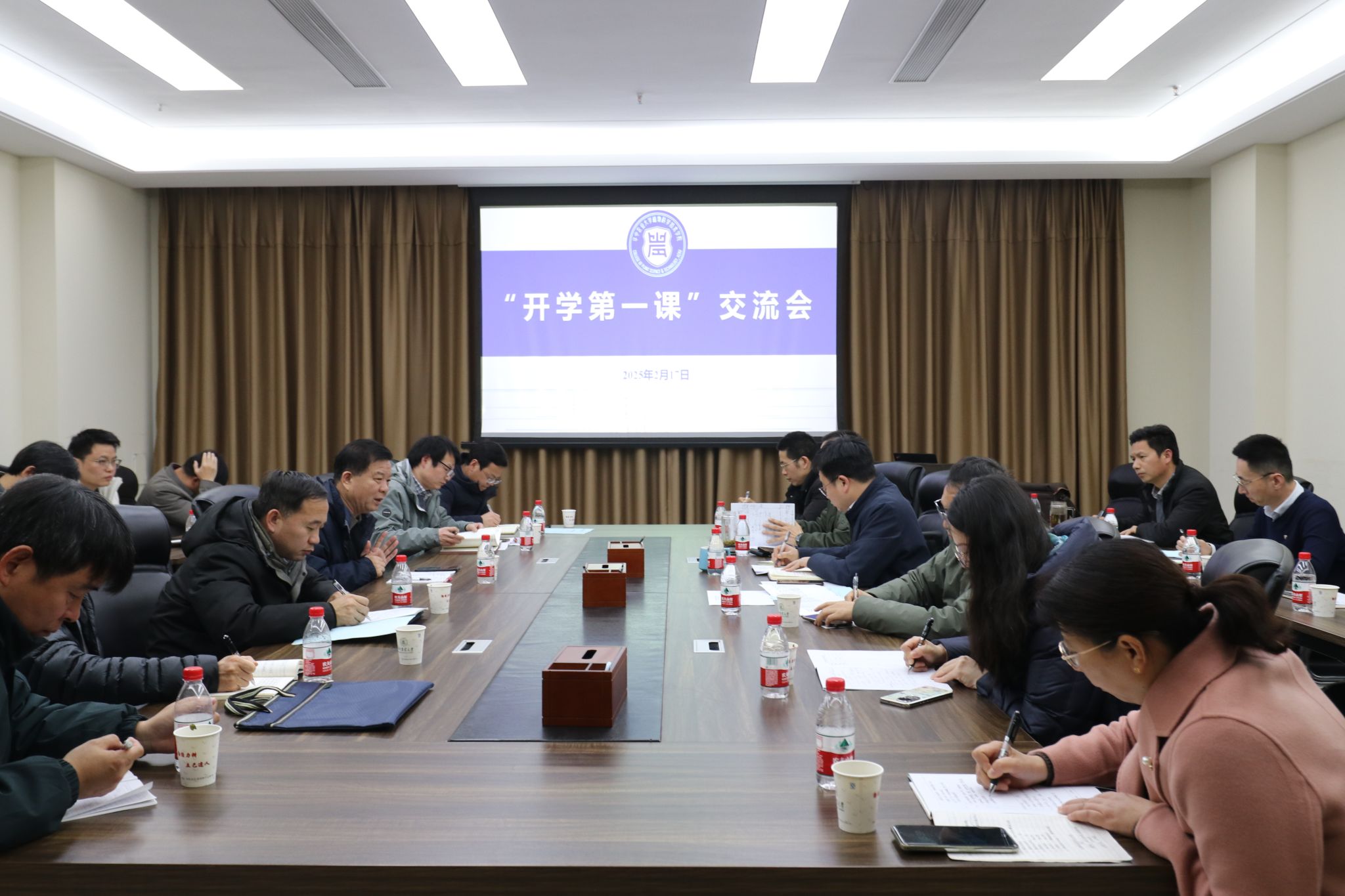 2月17日下午,公司在三综B308会议室召开2025春季学期“开学第一课”听课反馈座谈会。公司党委副书记、副董事长姚江林与相关职能部门负责人、公司领导班子、教研室主任和任课教师代表等30余人参加座谈,会议由公司党委书记周雄主持。