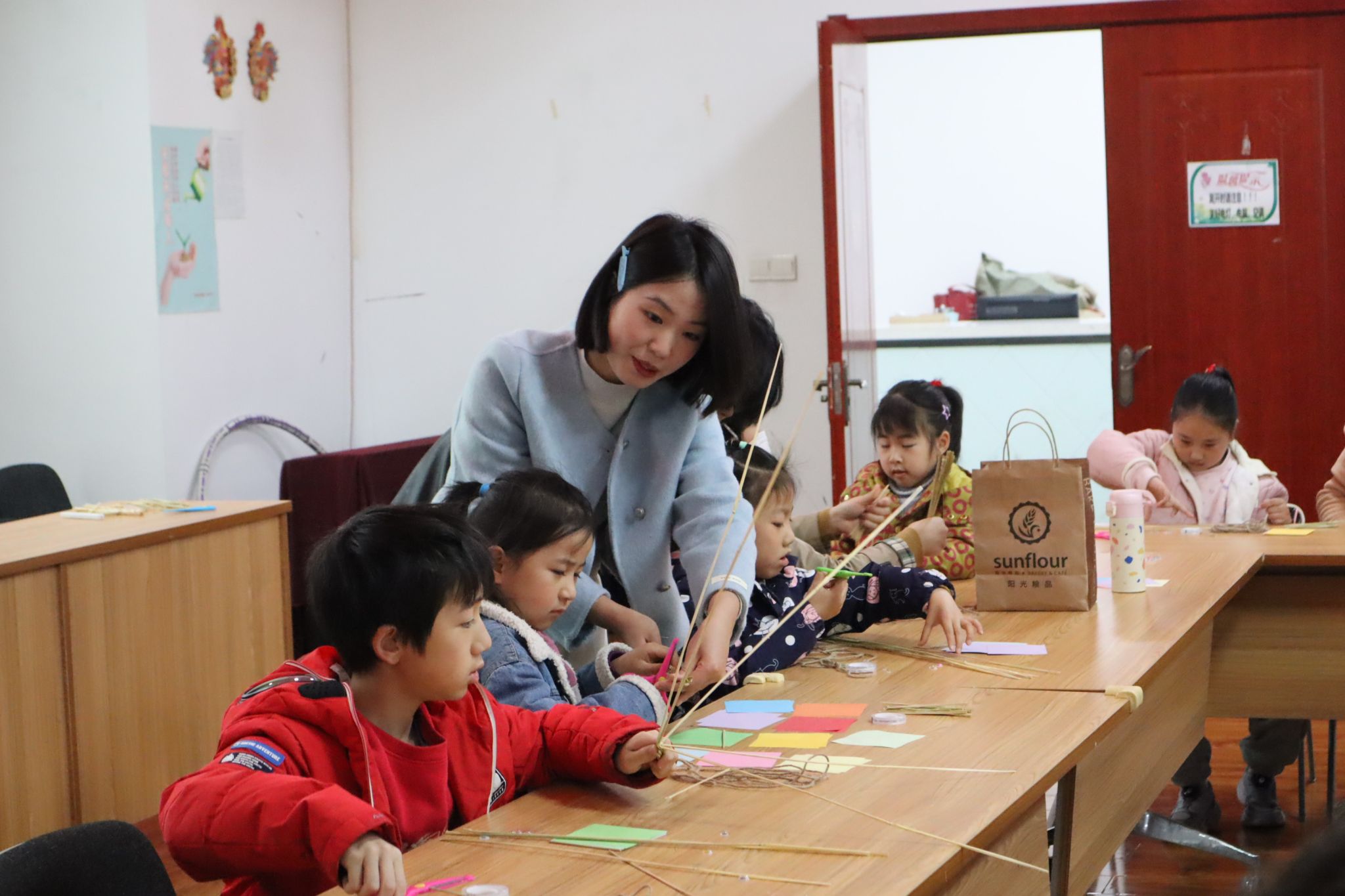 裁剪、捆扎、装饰……制作稻草人时,志愿者欧阳怡宁正指导孩子们用稻草编织文化记忆。“我要给守护者戴上草帽,和爷爷田里的一样!”“我要做一个哪吒稻草人!”孩子们天马行空的创意与传统技艺碰撞,零散稻草逐渐变成憨态可掬的守护者。家长李女士感慨道:“孩子编稻草人时背《悯农》,这种浸润式教育比说教更动人。”