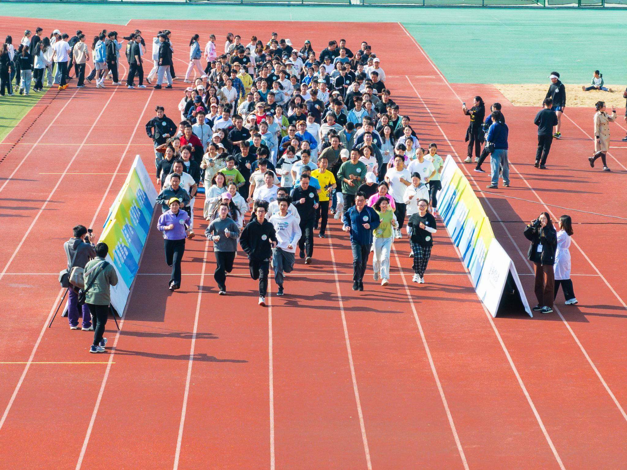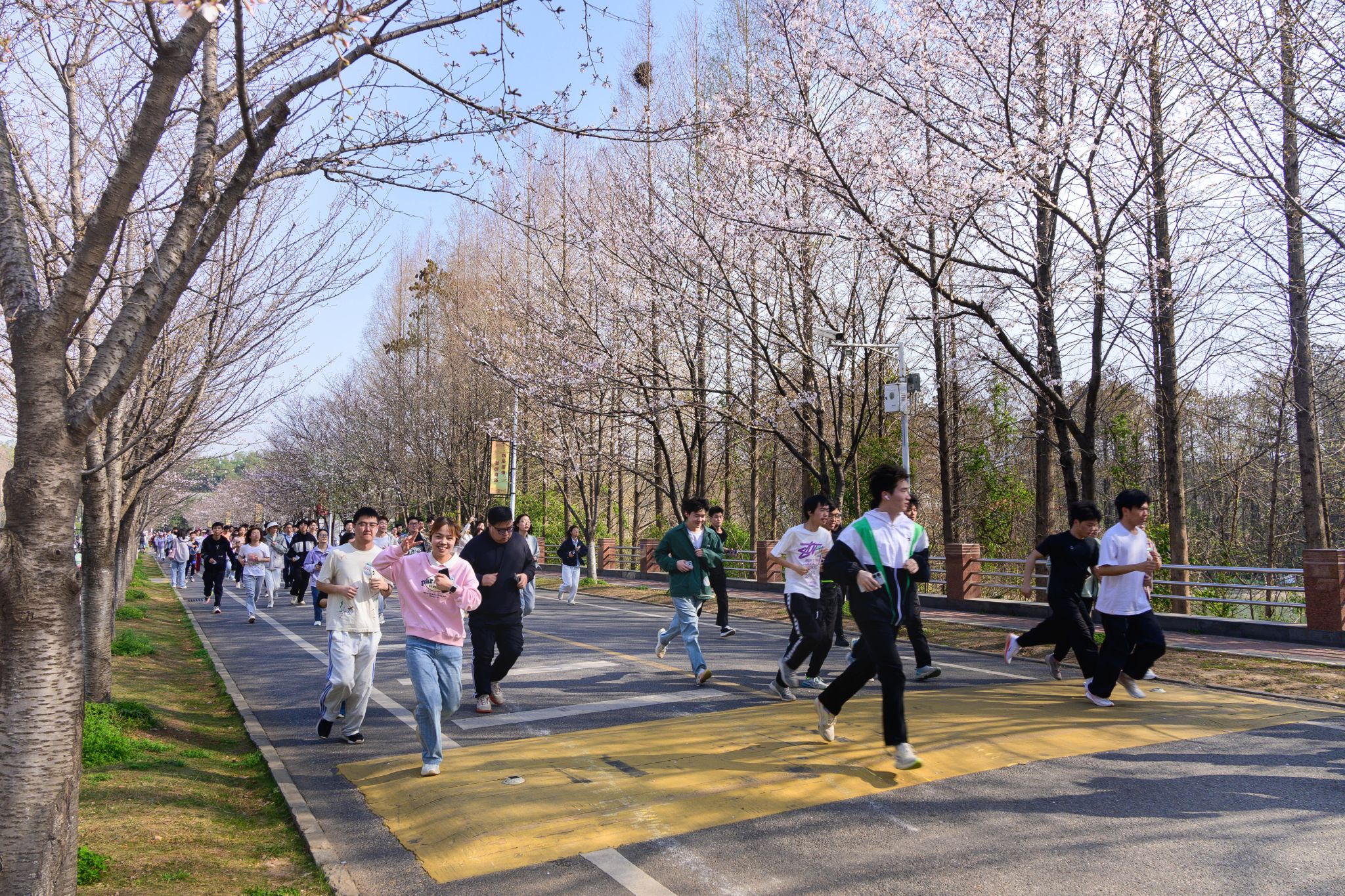 在赛前热身环节,师生们跟随校健美操队的节奏舒展身体,为长跑做好充分准备。随着发令枪响,公司参赛师生精神抖擞,奋勇向前。本次长跑活动分为竞赛组和非竞赛组,竞赛组设有四分马拉松赛、师生个人赛和寝室赛,最长赛程约10.5公里,沿途经过橘园路、樱花路、狮子山大道、南湖、油菜花田、二十四节气园、图书馆等校园标志性景点。公司师生在奔跑中感受春日的生机与校园的美景,展现了健康向上的生活态度。