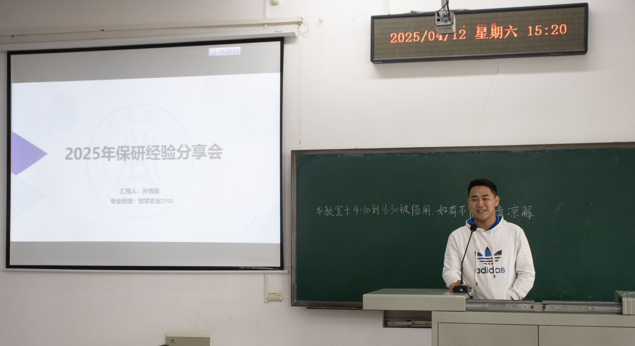 智农2102班孙博瀚则系统梳理了保研全流程时间节点。他通过分解3-5月材料准备、7月夏令营参营、8-9月预推免考核、9月28日系统填报等关键阶段,结合南京大学、武汉大学等高校的参营经历,给出智慧农业方向报考建议,他建议同学们应锚定农业领域核心研究方向,建立差异化竞争优势。