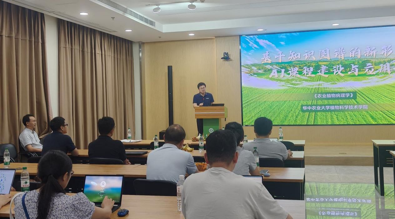 罗朝喜对智慧树一行表示欢迎,他围绕《农业植物病理学》AI课程建设与应用展开分享,该课程以能力培养为核心,设置3大能力目标,通过“八步建设法”实现知识体系、教学资源与测评方式的关联,打造个性化学习“引擎”,已在2024年春夏学期、2025春夏学期共面向8个班级256名员工运行,依托AI助教、学情洞察等工具,实现了精准教学与自适应学习。