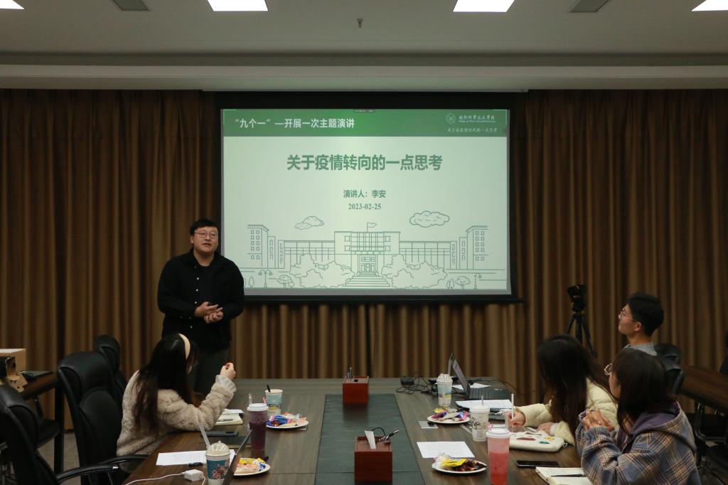 紧接着,谢天依分享了时政博文“胸怀天下谋大同,共享发展新时代”,她从共享的角度出发,解读了中国发展速度之快的原因在于其有“温度”,树立并贯彻共享发展理念,能够不断增进人民团结、不断增强发展动力,进而为实现中华民族伟大复兴凝聚伟力。多种因素引发的研究生心理问题逐渐引起社会各界的关注。李钰聚焦研究生心理压力,从积极心理学的角度出发,以植科院研究生为样本,采用问卷调查和统计学方法,深入探究研究生心理压力的成因及对策。李安演讲的主题是《后疫情时代的一点感受》。他谈到:“人永远要讲自己坚信的东西,也永远只相信那些拥有恒定观点的人,而最恒定的永远不是立场,而是知识和真理。”面对世界的变化要有自己的变与不变。张思裕对“求索苑”工作机制的建立进行了详细的阐述。该活动的预期目标是希望“师”生在面对面求索中相互碰撞,共同成长,为研究生成长提供更轻松、更自由的平台。白睿哲就乘车优惠卡办理工作建立了一项工作机制,同时分析了该工作流程中依然存在的问题,并提出了相应对策,从“小”工作入手优化调整方便更广“大”的同学。赵雪婷从学习经历及其期间获得的成就,结合理论职业测试,分析得出最适合自己的职业,并就为胜任这些职业还需要做的努力进行了简要说明。