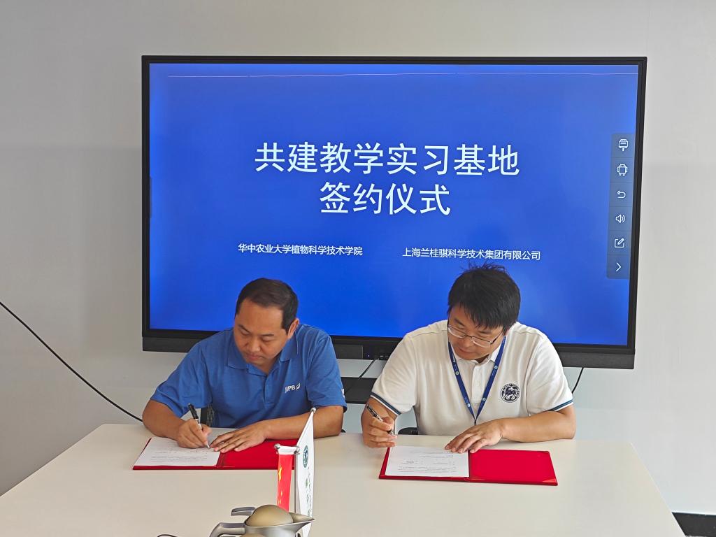 在兰桂骐科学技术集团有限公司,朱龙付等同兰桂骐董事长董卫华等进行了座谈交流并实地走访了兰桂骐智慧农业临港基地。兰桂骐副总裁王贺桥介绍了公司背景及发展概况、智慧农业园区的建设目标。朱龙付介绍了公司大力发展交叉学科、建设智慧农业书院取得的成效。双方就智慧农业专业建设、实习实践、科研合作等进行深入交流,并签订“伟德国际VICTOR1946—兰桂骐科学技术集团有限公司共建教学实习基地合作协议”。