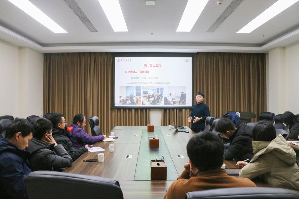 会议伊始,李林通过教学、科研和社会服务三个维度全面、详尽地展示了团队的教学成果,并与在场的老师分享了自己的见解及心得。他表示:“自从我成为大学老师以来,我一直在思考如何平衡教学、科研和社会服务之间的关系。作为教育工作者,我也将始终致力于这个重要课题,并全身心地投入其中。”