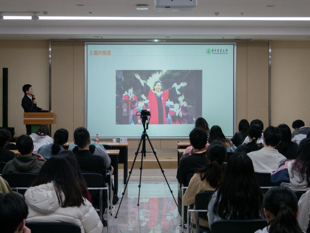 开班仪式结束后,晏华华作“融媒体时代公司宣传工作如何破圈出彩”的培训分享,他从公司宣传常用的文字、图片和视频三个方面进行了分享。在文字方面,晏华华以多年的工作经验,展示了在采访中的入手方向、指标体系等要点,同时指出了常见的写作问题。他指出,在公司宣传工作中的稿件应展现人物精神风貌,刻画人物粗细相搭,风格也要做到片段式呈现、冲突式设计和文学性表达的有机结合。在图片方面,晏华华借助生动的新闻图片实例,强调了不同新闻摄影构图的景别内涵,对新闻图片中的视角等细节提出了独到的见解。在视频方面,晏华华结合近年来公司系列热门视频,将选题的关键浓缩为“人物+现场+情感”的组合,强调同学们生活中多发掘“新奇特优趣”的素材,搭配合适有吸引力的介绍,从而创作出出圈视频。