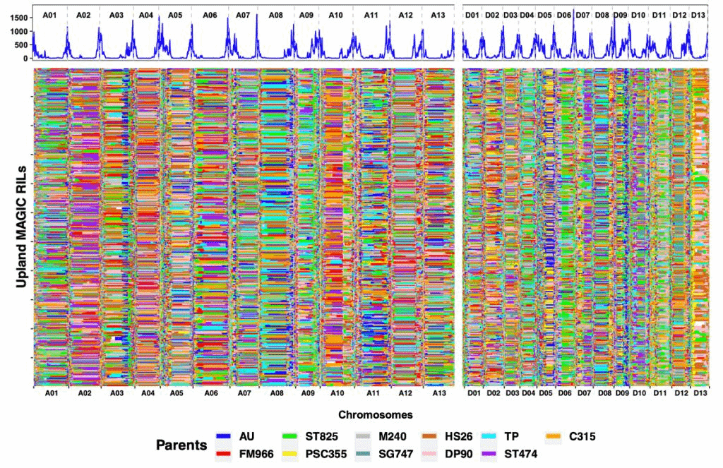 2022年1月17日,公司棉花遗传改良团队联合美国农业部南方研究中心在开放获取期刊Communications Biology发表了题为“Genomic interrogation of a MAGIC population highlights genetic factors controlling fiber quality traits in cotton”的研究论文。该研究基于550个重组自交系构成的MAGIC(multi-parent advanced generation intercross)群体,结合7年12个环境的表型数据全面剖析了陆地棉纤维品质性状的遗传基础。