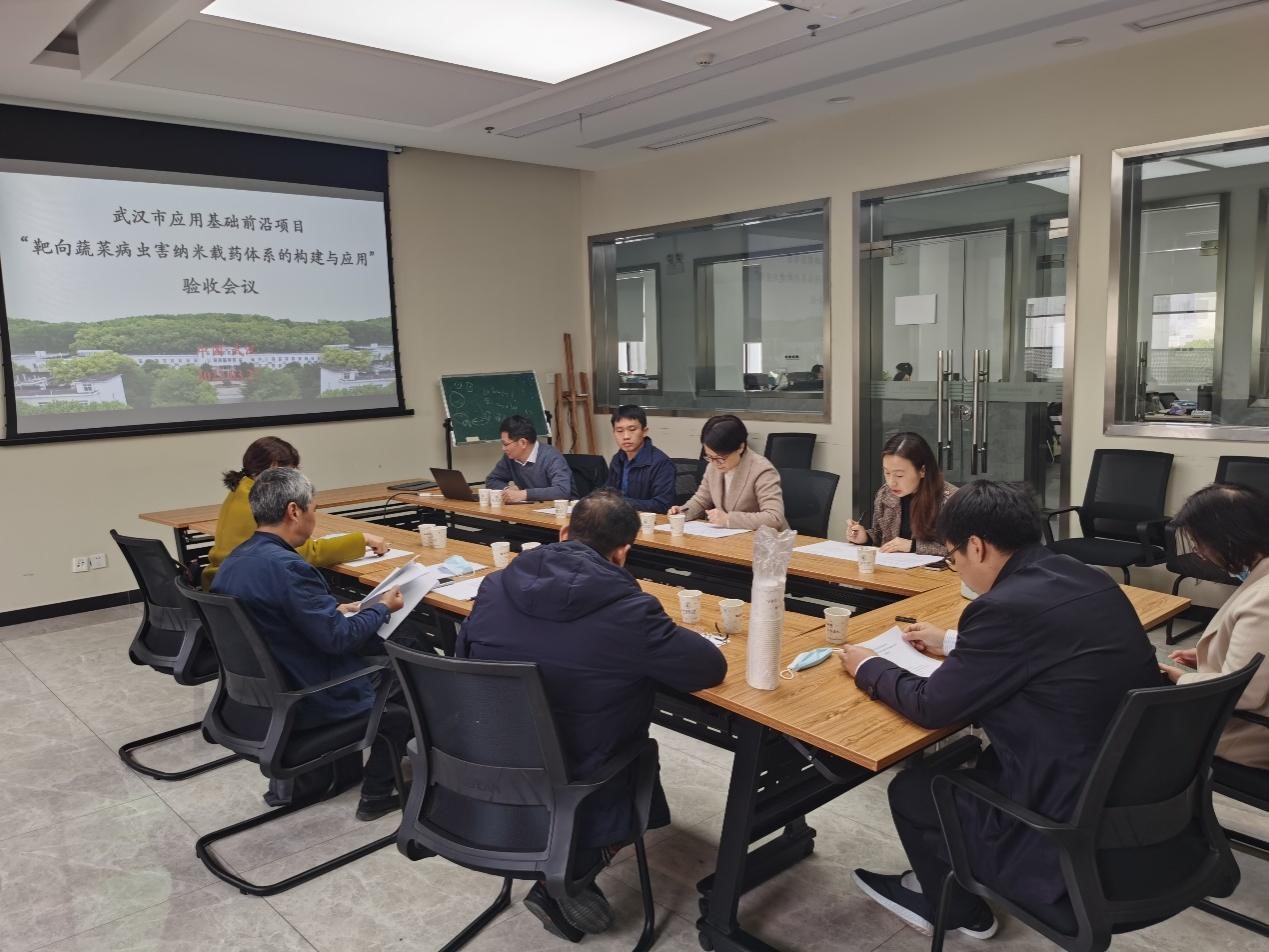 3月27日,公司李建洪教授主持的武汉市应用基础前沿项目“靶向蔬菜病虫害纳米载药体系的构建与应用”验收会在校召开。会议邀请武汉市农业科公司柯卫东研究员、中南民族大学何冬兰教授、湖北省植物保护总站周华众研究员担任验收专家。科发院重大项目管理处处长杨毅、项目管理办公室主任江晶、项目负责人及团队成员马洪菊副教授、万虎副教授和何顺副教授参加验收会。
