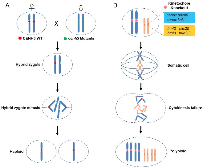 图2 基于着丝粒的植物单倍体和多倍体诱导体系