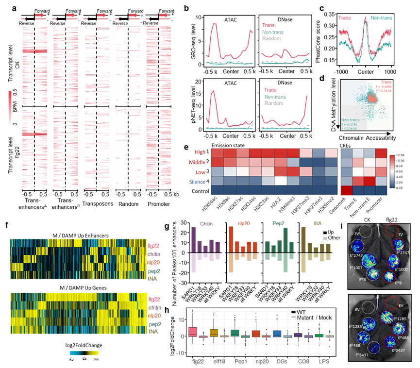 图1. 植物免疫相关增强子的转录表达和染色体状态特征