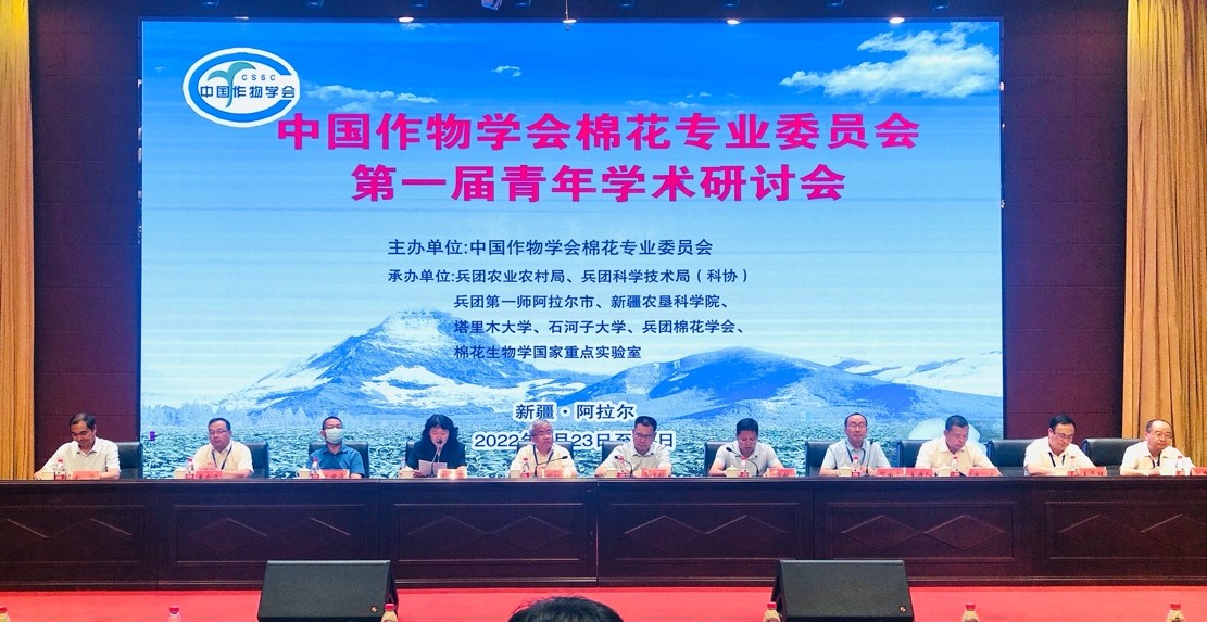 (通讯员 杨细燕)2022年7月24-25日,中国作物学会棉花专业委员会第一届青年学术研讨会在新疆阿拉尔市召开。会议由新疆生产建设兵团农业农村局、兵团科学技术局、兵团第一师阿拉尔市、新疆农垦科公司、塔里木大学、石河子大学、兵团棉花学会、棉花生物学国家重点实验室共同承办。来自全国科研、教学、推广、企业等单位290余代表亲临大会现场,150余人线上观看会议直播。棉花专业委员会会长、棉花团队首席科学家张献龙教授带领棉花团队教师和研究生一行8人赴新疆阿拉尔参会。