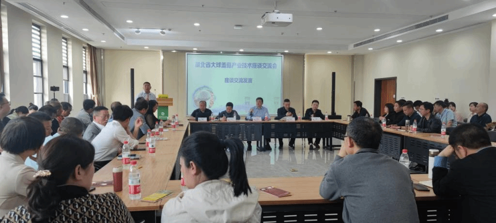 2023年4月10日,由湖北省食用菌协会主办的“湖北省大球盖菇产业技术座谈交流会”在公司第三综合楼七楼会议室举行。会议由中国菌物学会大球盖菇产业分会会长、公司应用真菌学科带头人边银丙教授主持,省蔬菜办副主任周雄祥、省食用菌协会会长肖扬、省食用菌产业体系首席专家王卓仁、易菇网总裁赵雄,第二届全国大球盖菇产业高级研修班学员和科研院所、龙头企业、专业合作社等单位代表共90余人参加了会议。