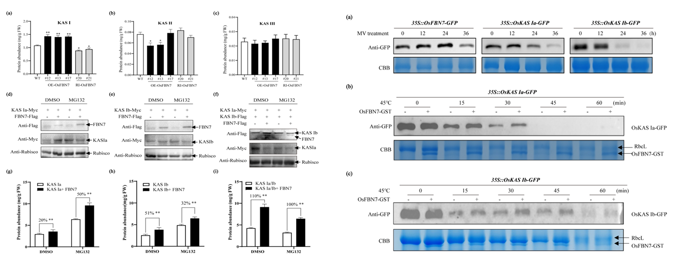 图4 OsFBN7提高OsKAS I蛋白丰度 图5 OsFBN7提高OsKAS I蛋白稳定性
