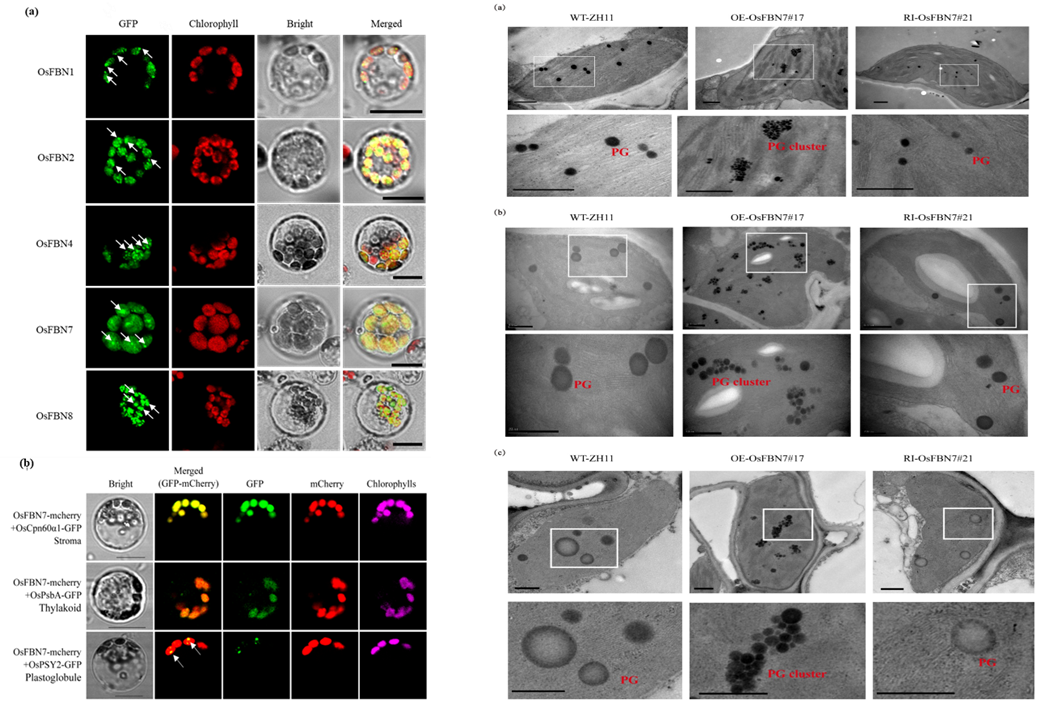 图1质体小球核心蛋白定位 图2水稻剑叶不同时期透射电镜下质体小球