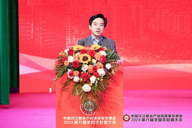 边银丙教授在大会上作了题为“汉江菌谷的定位与产业发展方向”的主旨报告,指出汉江流域包括陕西汉中、河南南阳、湖北十堰、襄阳、荆门、随州等地,具有深厚的食用菌产业基础,是我国优质香菇和黑木耳传统主产区,近年来汉江河谷凭借适宜的土壤和“一网两棚三膜”设施栽培技术推广,汉江流域迅速成为羊肚菌栽培聚集区,形成了集食用菌研发菌种、设施栽培、精深加工、贸易销售为一体的完整产业链,成为全国食用菌产业的高地。建设汉江菌谷有利于进一步加强区域合作,推动中部地区食用菌产业的发展,形成独特的鄂豫川陕渝优势特色产区。