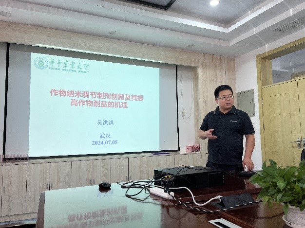 作物纳米生物学团队一行参观了环安所实验室与产学研平台,随后谢周丽副教授和吴洪洪教授分别作了题为《纳米材料通过翻译调控提高作物抗逆》和《作物纳米调节制剂创制及其提高作物耐盐的机理》的报告。市农科院环安所农产品质量与安全研究室副主任王利华就环安所的发展历史、工作方向、研究进展、成果转化经验和合作意向进行了介绍。随后,双方就报告内容、参观体会等开展了座谈交流。最后,市农科院环安所副所长金凤美做总结发言,希望华中农大和市农科院环安所围绕农业生产中的卡脖子问题开展稳定和创新性合作。