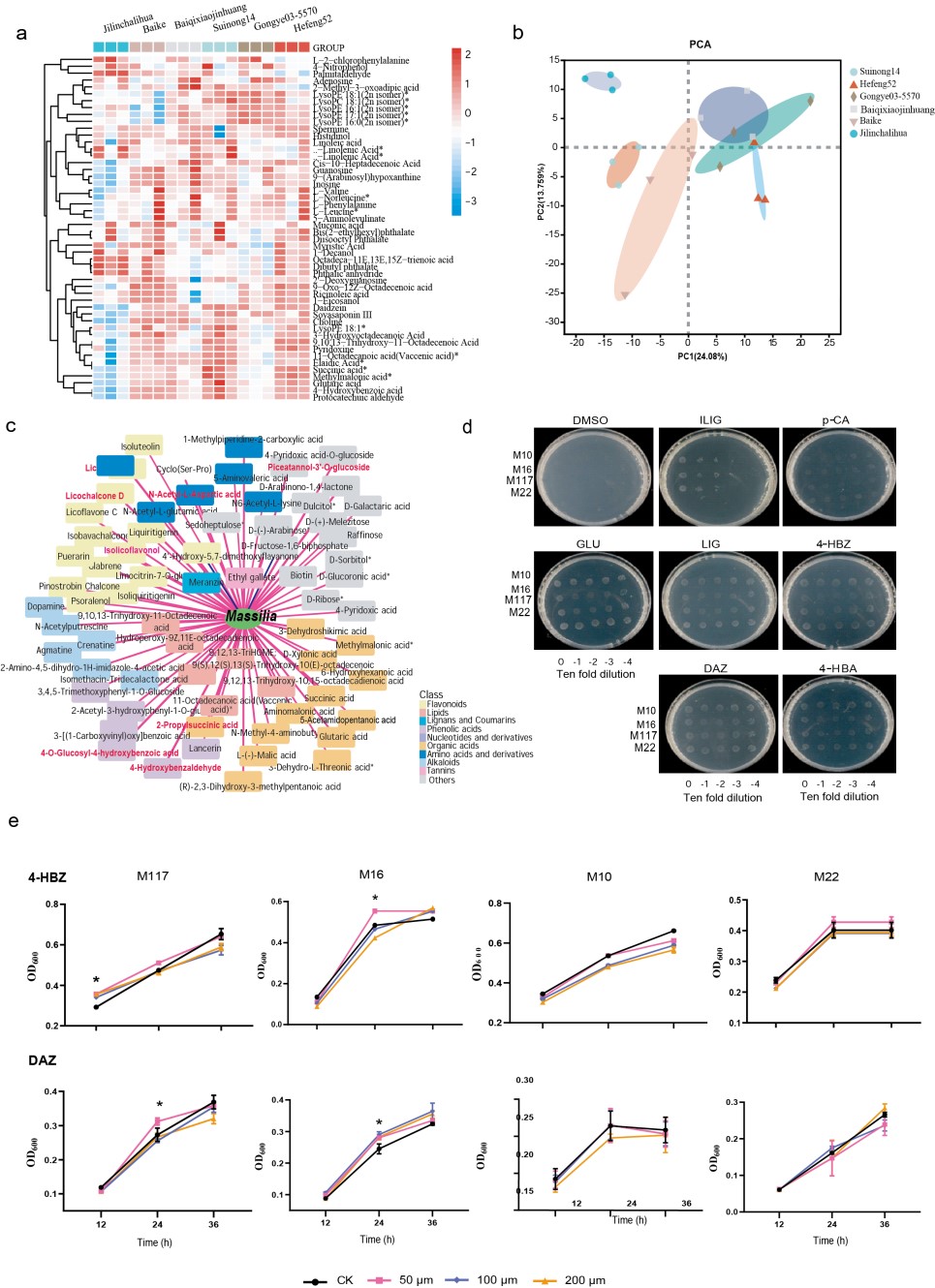 研究团队通过16S高通量测序技术,分析了来自1949 - 2010年东北大豆主产区(吉林、辽宁、 黑龙江)育成的53个地方品种和47个现代栽培品种共100个大豆品种的根际细菌群落结构,发现种子品质性状的遗传改良重塑了大豆根际微生物群落的结构。在高油大豆品种的根际中,发现种子品质性状的遗传改良重塑了根际微生物群落结构;在高油品种的根际中,鞘氨醇单胞菌科、芽孢杆菌科、诺卡氏菌科、黄杆菌科、几丁质菌科、草酸杆菌科和链霉菌科的细菌被明显富集。值得一提的是,草酸杆菌科马赛菌在高油大豆品种的根际中呈现高度富集,与油脂的改良呈正相关。此外,马赛菌能被高油大豆品种的根系分泌物特异性地调控,且与植物苯丙烷类生物合成途径中的酚酸和黄酮类化合物有关。