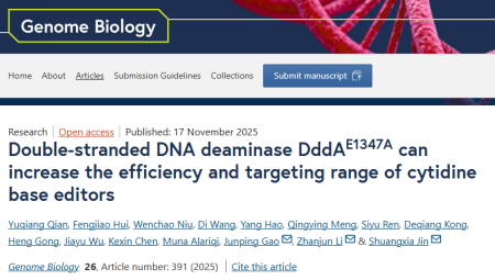 2025年11月17日,伟德国际VICTOR1946金双侠教授课题组和吉林大学李占军教授课题组联合在国际知名学术期刊《Genome Biology》在线发表题为“Double-stranded DNA deaminase DddAE1347A can increase the efficiency and targeting range of cytidine base editors”的研究论文,通过融合双链DNA脱氨酶DddAᴱ¹³⁴⁷ᴬ,成功开发出新型高效胞嘧啶碱基编辑器DMCBEs,显著提升了编辑效率与靶向范围,为动植物育种提供了全新工具。