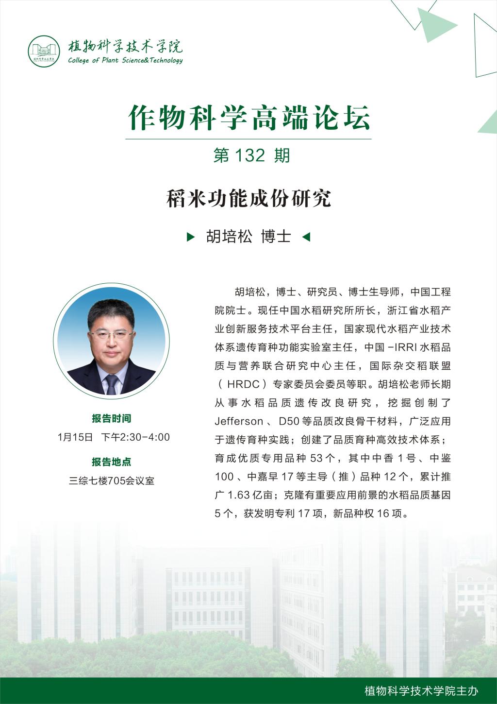作物科学高端讲坛(胡培松 博士)