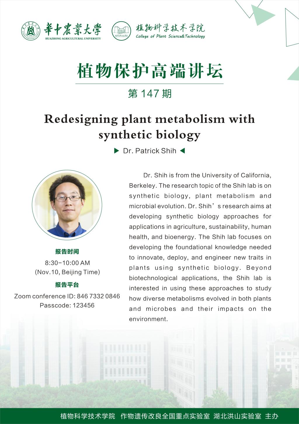 植物保护高端讲坛(Patrick Shih博士)
