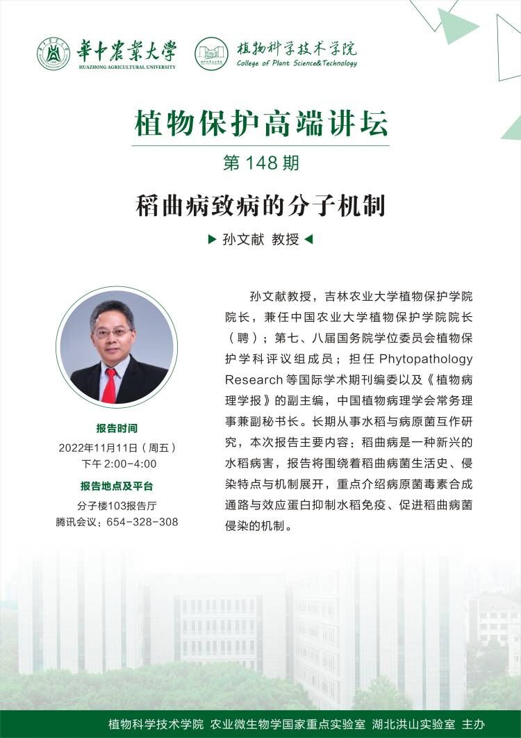 植物保护高端讲坛(孙文献 教授)