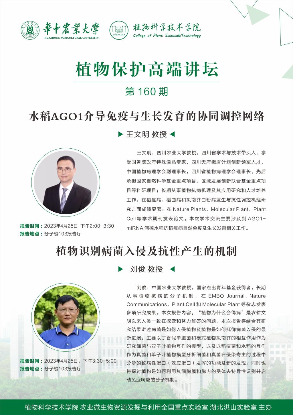 植物保护高端讲坛(王文明 教授、刘俊 教授)
