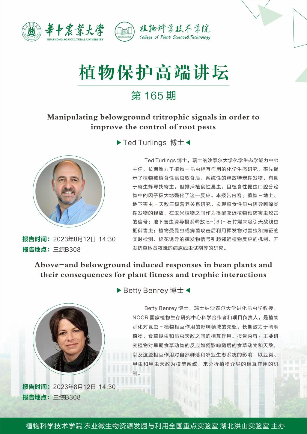 植物保护高端讲坛(Ted Turlings;Betty Benrey)