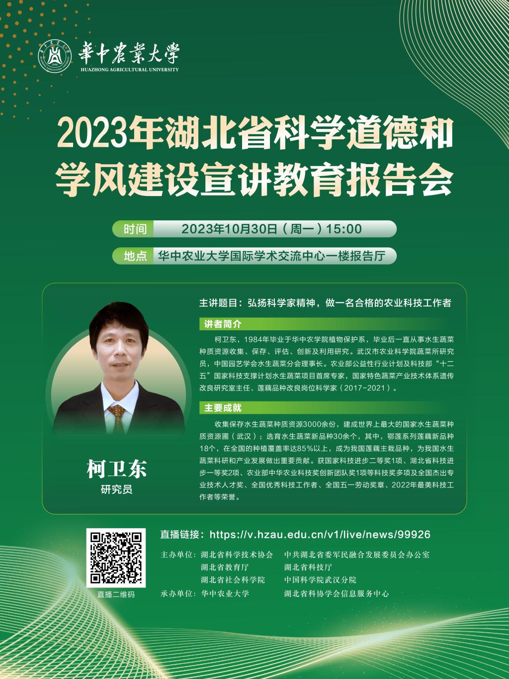 2023年湖北省科学道德和学风建设宣讲教育报告会