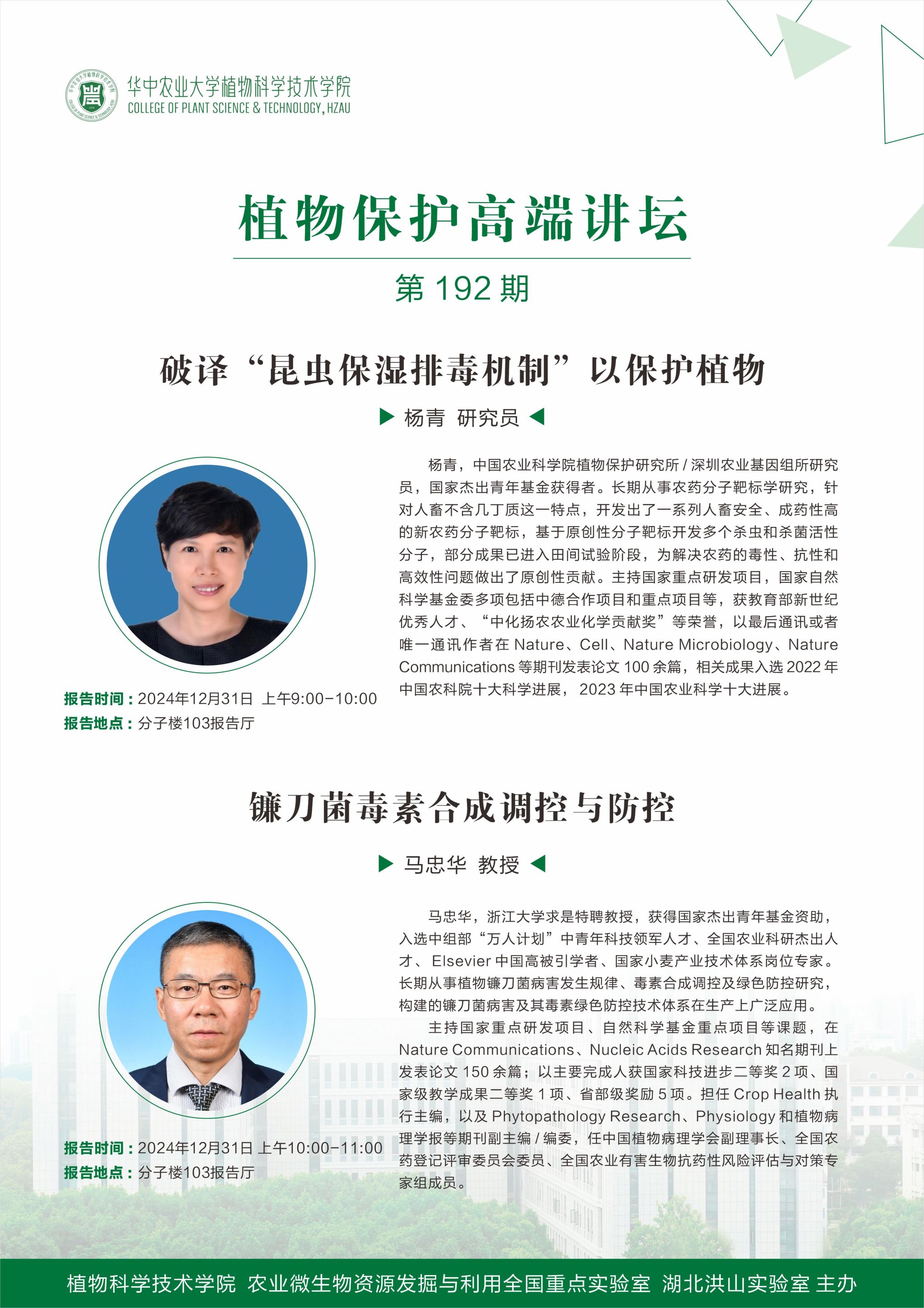 破译“昆虫保湿排毒机制”以保护植物 / 镰刀菌毒素合成调控与防控