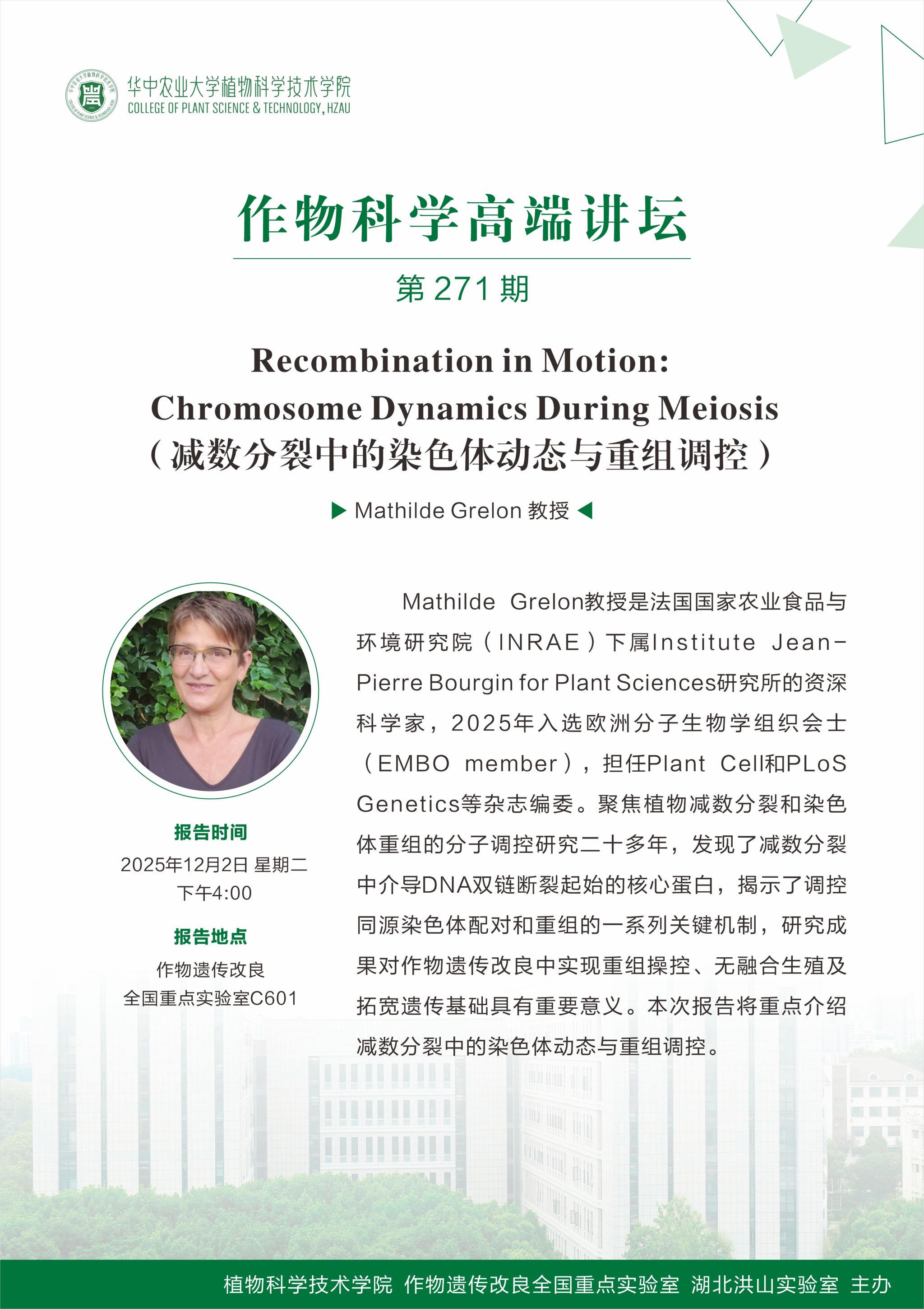 减数分裂中的染色体动态与重组调控(Mathilde Grelon 教授)