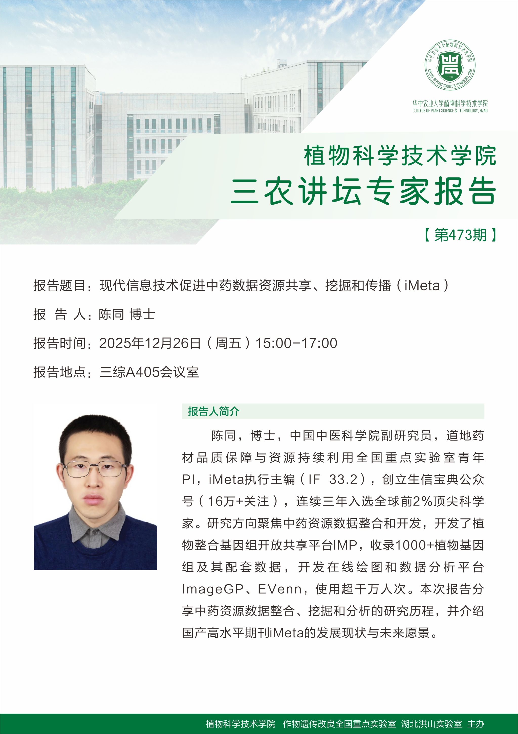 现代信息技术促进中药数据资源共享、挖掘和传播(iMeta)(陈同 博士)