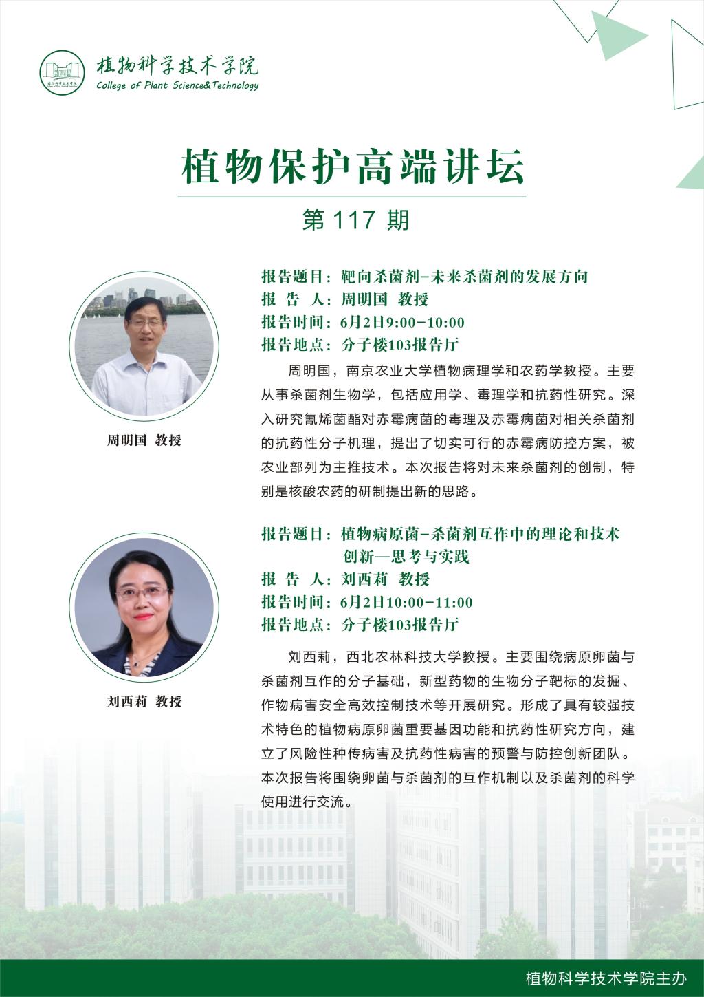 植物保护高端讲坛(周明国 教授;刘西莉 教授)