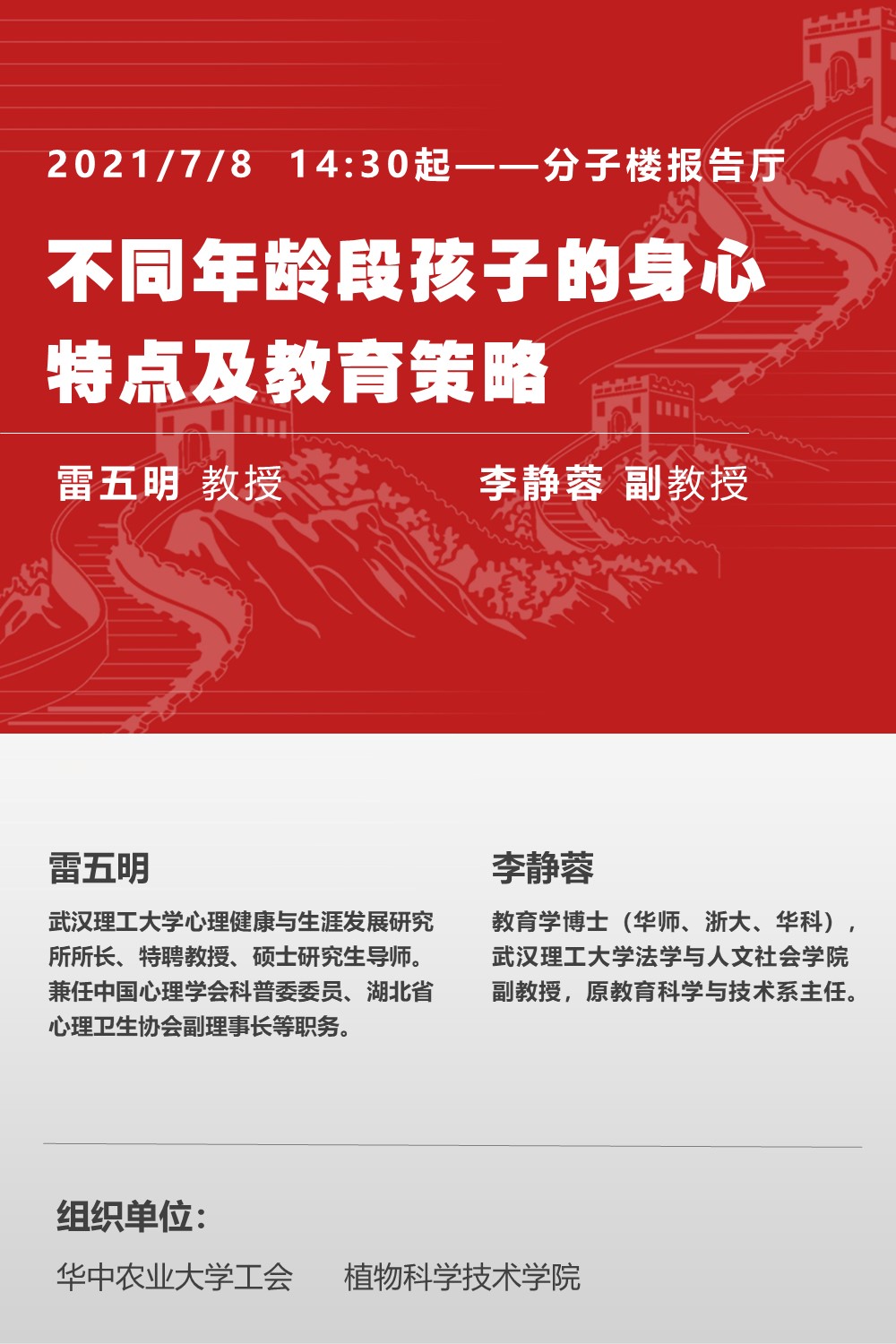不同年龄段孩子的身心特点及教育策略(雷五明 教授、李静蓉 副教授)