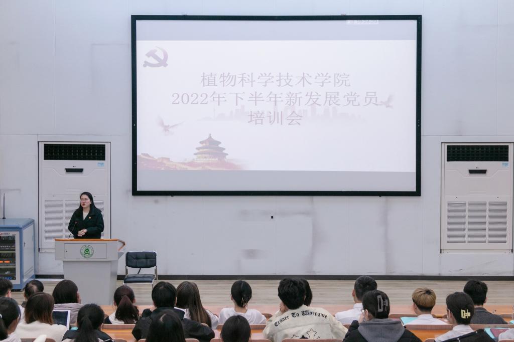 3月3日晚,植科院2022 年下半年新发展党员入党宣誓大会暨新发展党员培训会在三教S1报告厅举办。植科公司党委组织员马平福、辅导员明淇、52位新发展党员以及全体本科生党员参加大会。大会由党办活动组织部刘秋月主持。