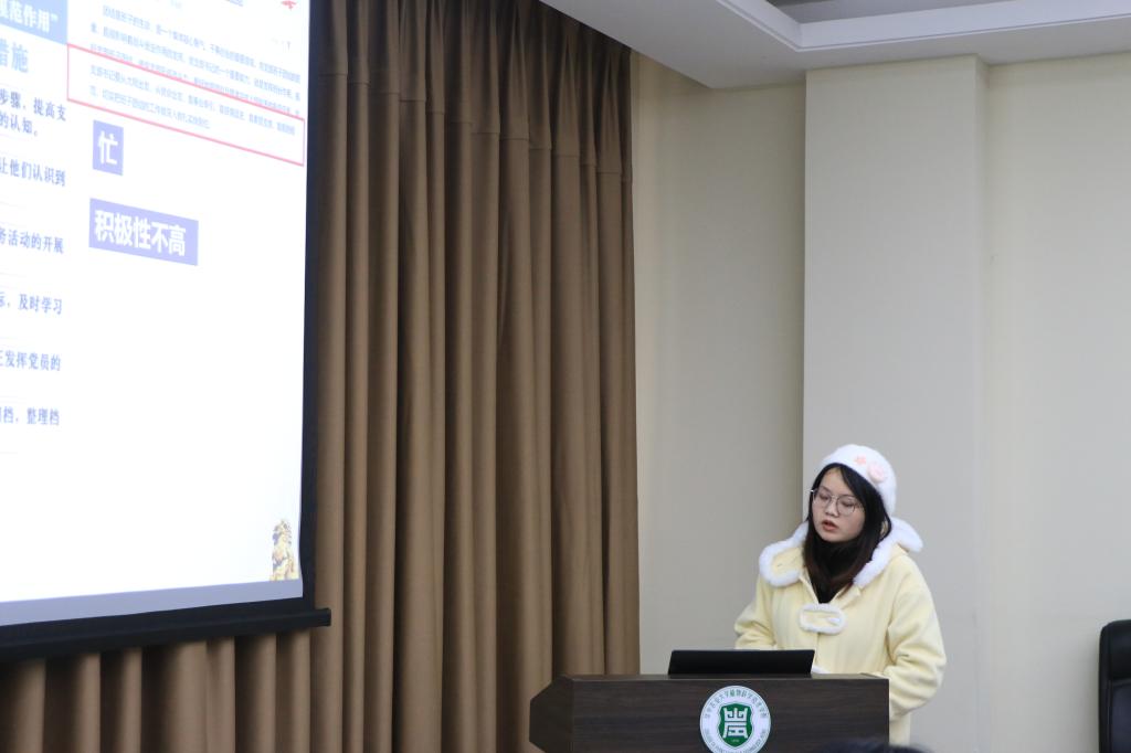 真菌研究生党支部书记周思维就支部工作进行分享交流,她强调:“要做好科研活动与支部生活的相对平衡,开展主题党日学习的形式要多样化。活动开展的范围尽量广泛,而不只是拘泥于本支部,这样不仅能加强支部间的交流,同时缓解支部内同志的压力。可以具体体现在支部联学、相关影视作品的观看和相关书籍的共读、相关纪念馆的实地学习等。”