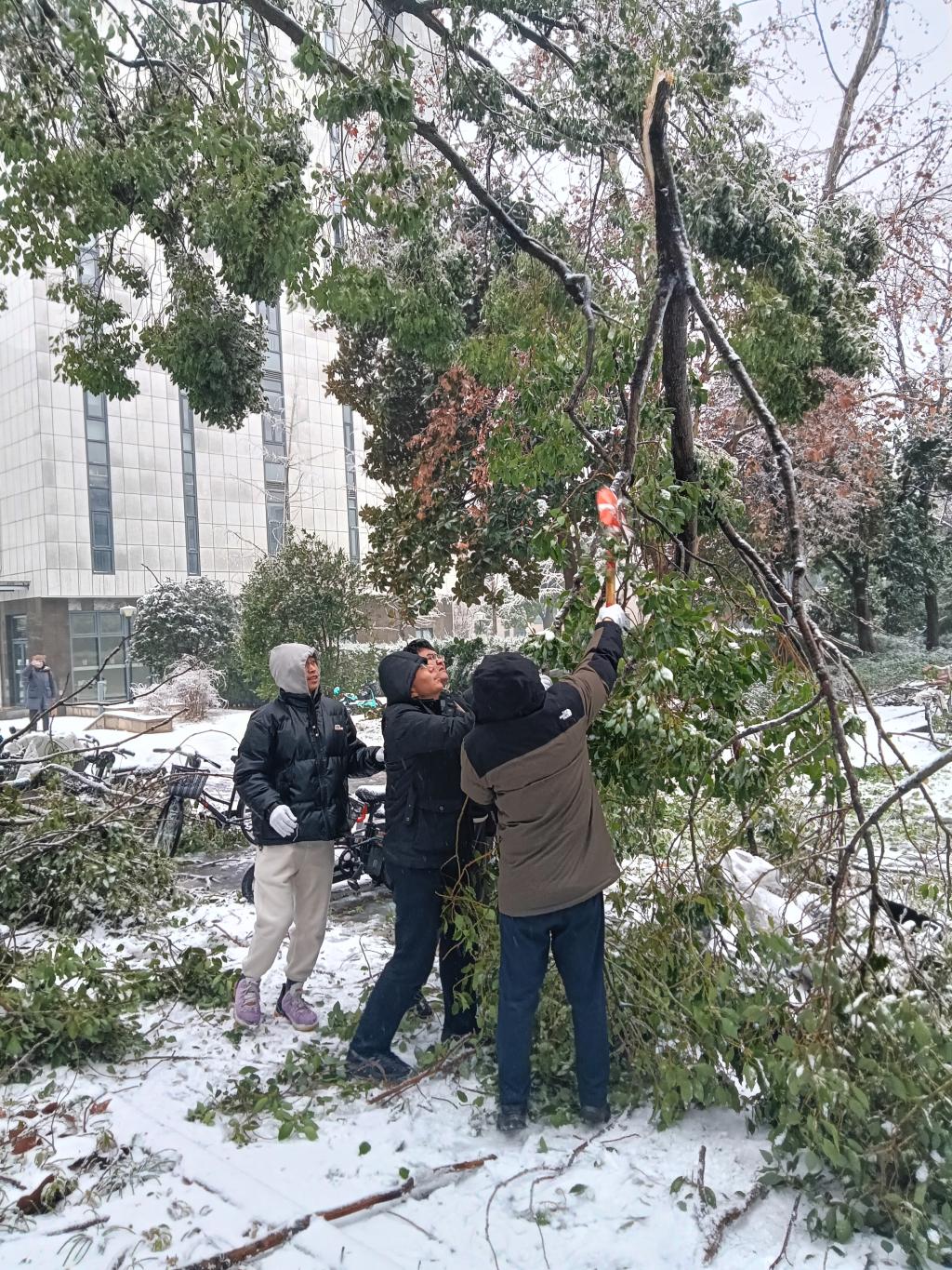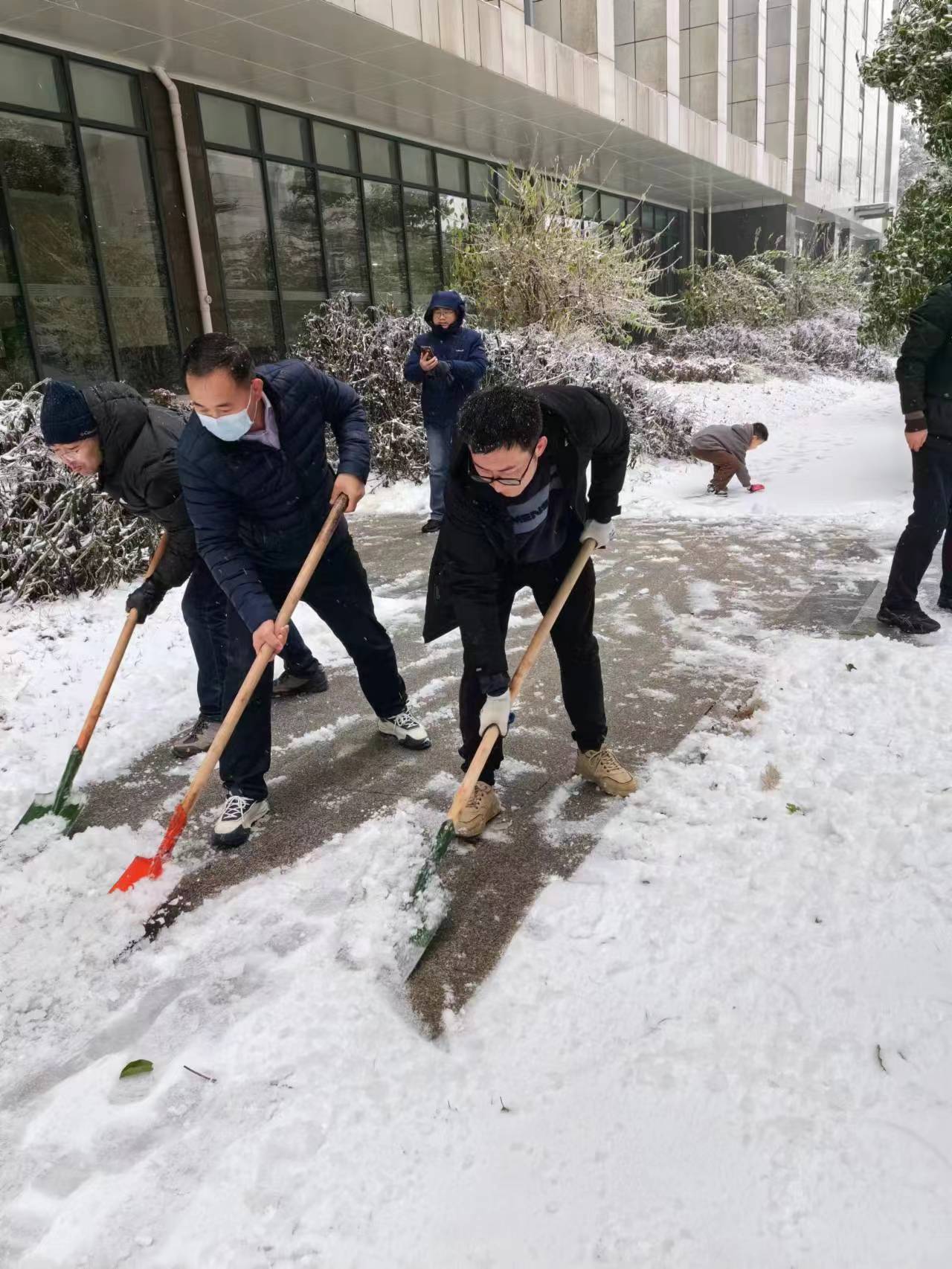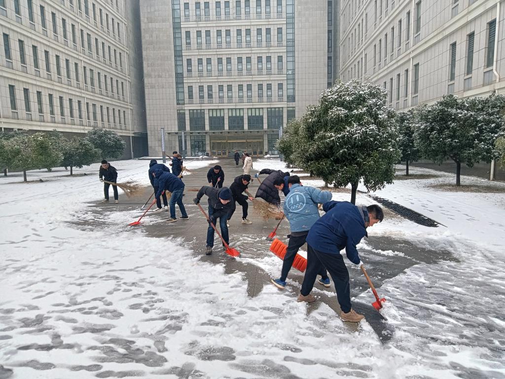 近日,湖北武汉遭遇低温暴雪恶劣天气,公司校园道路出现结冰积雪,校内部分区域发生树木断枝、倒伏现象。为及时消除安全隐患,2月4日上午,植科院组建一支由留校教师、研究生组成的青年突击队,围绕三综、分子楼和真菌楼等周边,开展扫雪除冰,清除断枝和其他障碍物,保障师生安全出行。