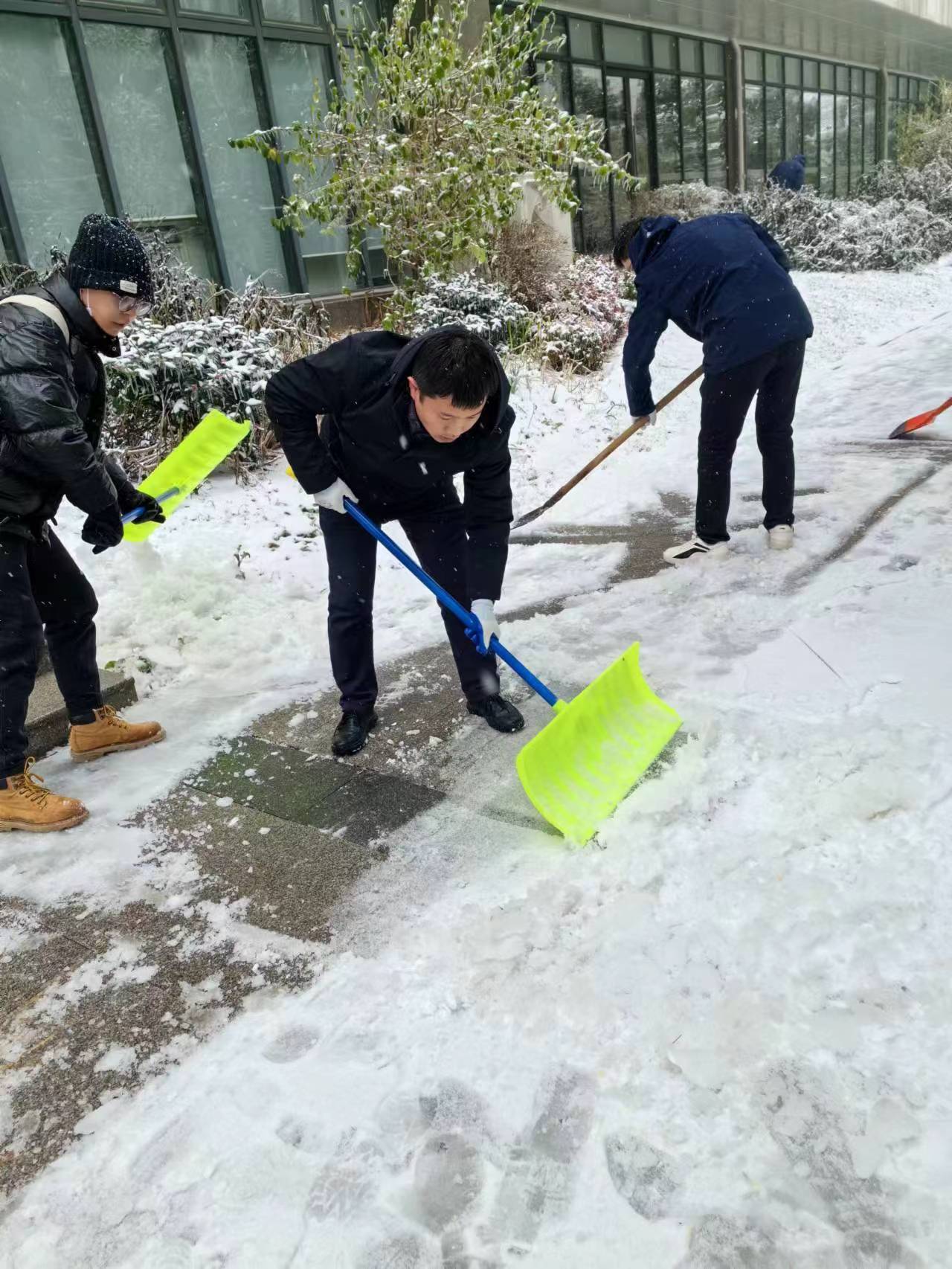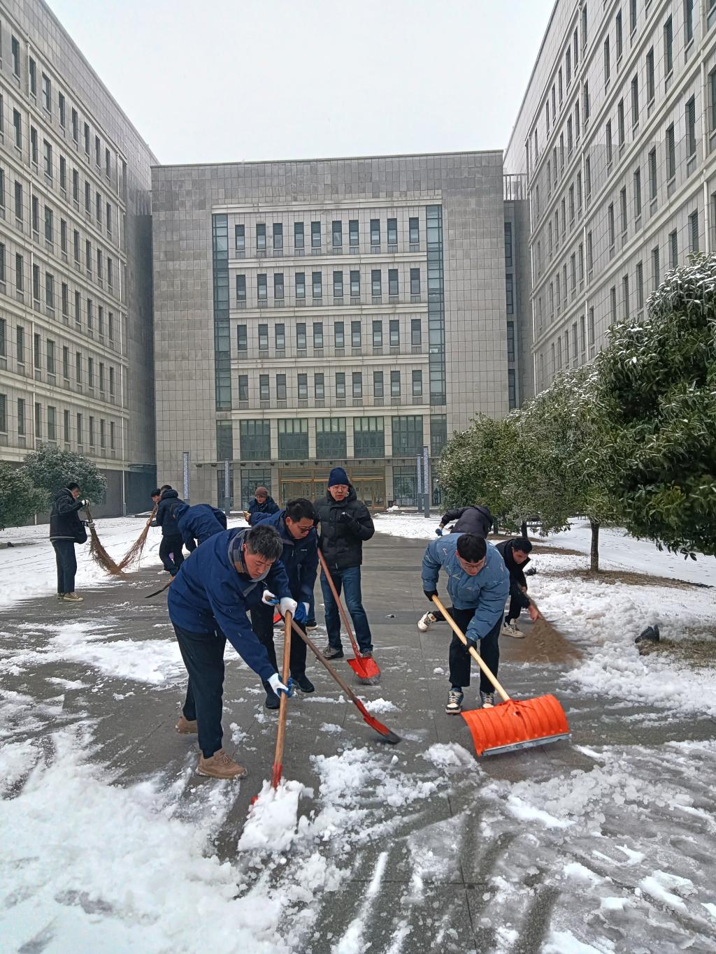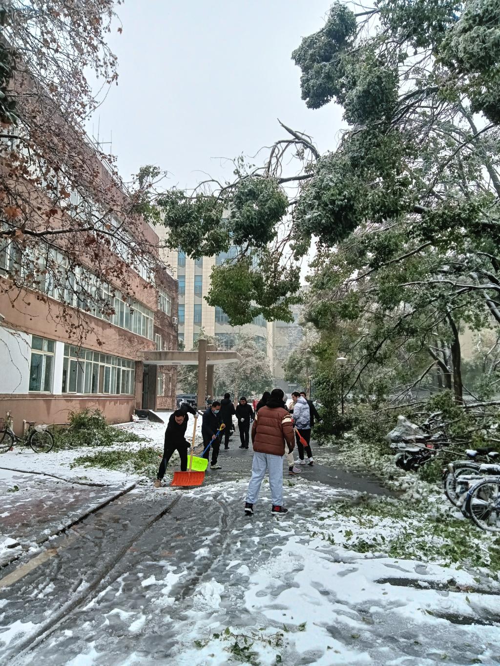 近日,湖北武汉遭遇低温暴雪恶劣天气,公司校园道路出现结冰积雪,校内部分区域发生树木断枝、倒伏现象。为及时消除安全隐患,2月4日上午,植科院组建一支由留校教师、研究生组成的青年突击队,围绕三综、分子楼和真菌楼等周边,开展扫雪除冰,清除断枝和其他障碍物,保障师生安全出行。