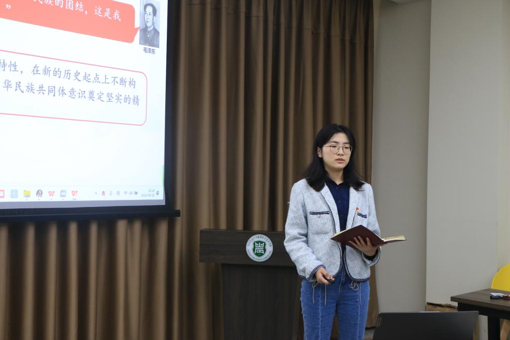 植物病理专业研究生第四党支部书记马畔围绕“增强安全意识、维护国家安全”这一主题,介绍了深刻领会意识形态工作的极端重要性以及新时代青年应如何坚守意识形态阵地。她强调:“人民有希望、国家有力量、名族才有希望。作为新时代青年,我们应增强四个意识、坚定四个自信、做到两个维护。同时立足新时代使命担当,坚持正确政治方向;励志正能弘扬正气,增强辨别能力;积极主动融入社会,着眼长远积极向上。具有‘安而不忘危、存而不忘亡、治而不忘乱’的忧患意识,才能实现中华民族伟大复兴的中国梦。”