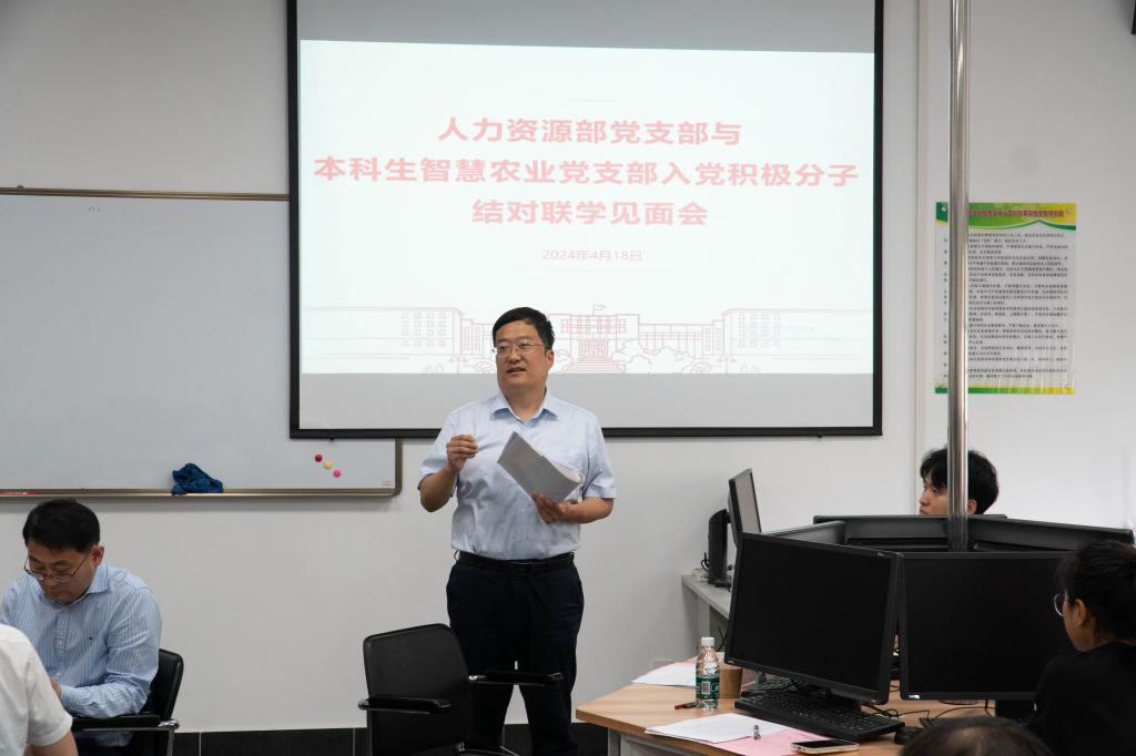 4月18日下午,人力资源部党支部与本科生智慧农业专业党支部“红色导师”见面会顺利开展,人力资源部党支部全体党员与员工支部结对入党积极分子、党员代表亲切交流,师生共赴作物表型平台共看智能农业发展。