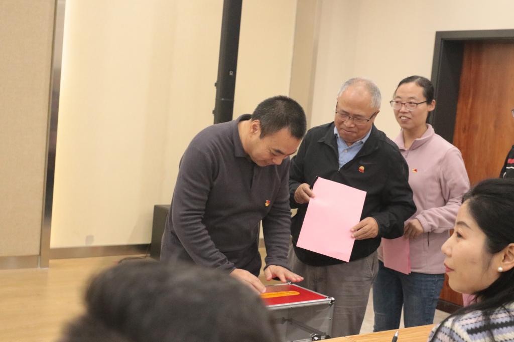 监票人周兴苗、左霞辉向参会代表展示检验票箱,工作人员向全体参会代表发放选票并宣读选票填写说明。全体到会党员代表认真填写选票,投出庄严神圣的一票。投票结束,由监票人监督,计票人开箱清点回收选票。最后,监票人周兴苗现场报告了计票结果。