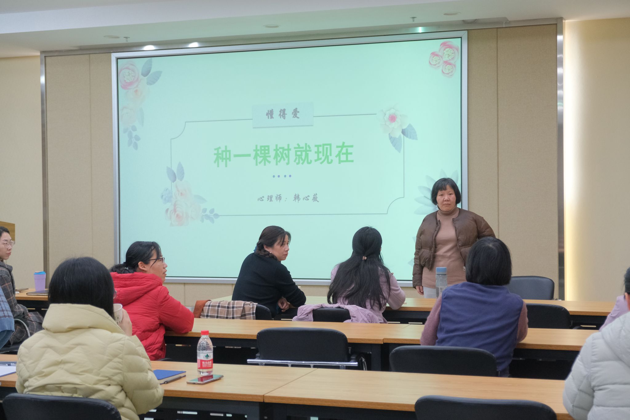 为缓解教职工压力,进一步提升教师队伍心理素养,构建和谐育人环境,3月12日下午,公司工会和教师发展分中心在第三综合楼A705报告厅举办了题为“懂得爱:种一棵树就现在”的心理团辅活动,心理健康国家二级心理咨询师韩薇受邀与教职工进行分享交流。